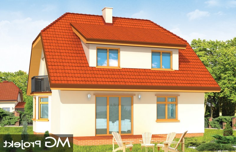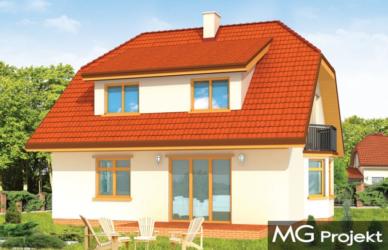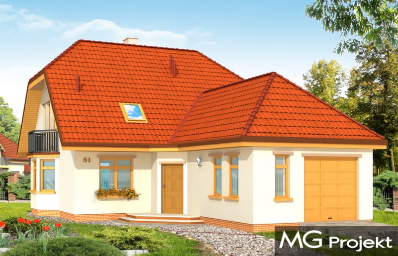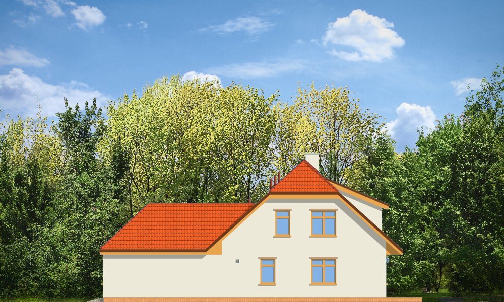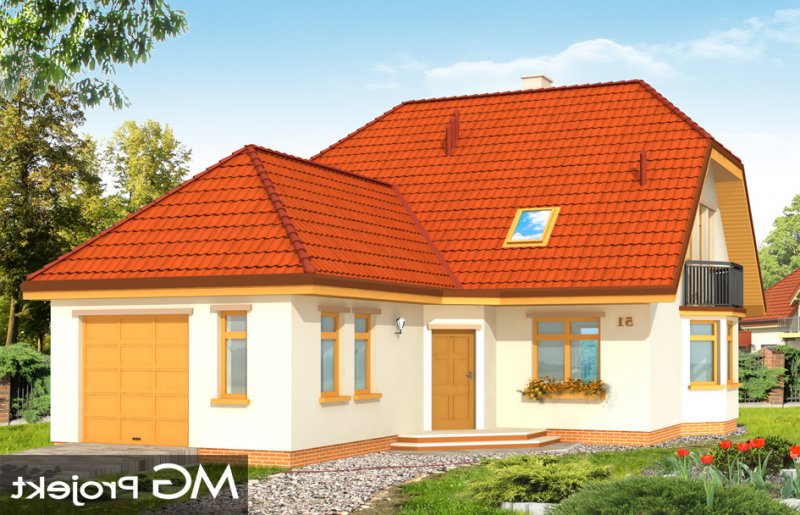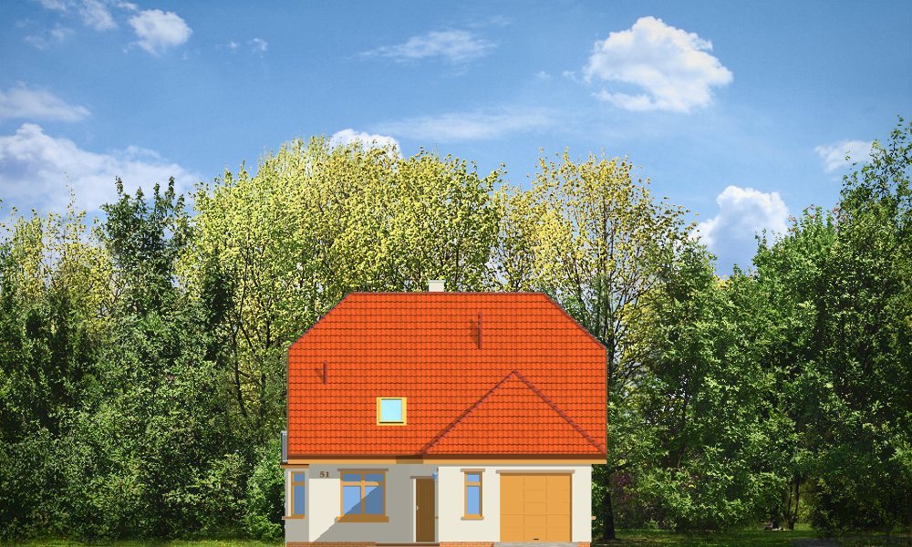 Solidny to domek parterowy z użytkowym poddaszem. Odpowiedni dla rodziny 4-5 osobowej. Budynek ma zwartą bryłę, przekrytą dwuspadowym dachem z naczółkami, a od frontu dobudowany wygodny garaż. Na parterze budynku, oprócz pokoju dziennego z kominkiem i jadalnią z wykuszem zaprojektowano dodatkowy pokój i łazienkę. Na poddaszu mieszczą się trzy sypialnie z łazienką i garderobą. Strych nad garażem można wykorzystać na pralnię-suszarnię lub magazyn dostępny z garażu. Domek doskonale nadaje się na wąską działkę. Pracownia posiada również wersję projektu w odbiciu lustrzanym.