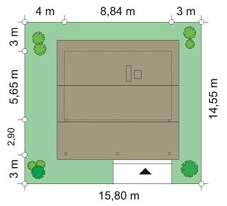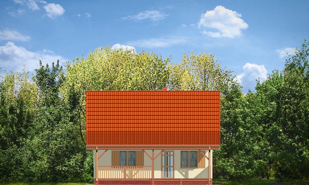 Sosenka 2 doskonale sprawdzi się jako Państwa letnia „rezydencja”. Dom stanowi wersję wariantową projektu Sosenka. Dzięki dużemu zadaszonemu tarasowi, na którym można przesiadywać w letnie wieczory wnętrze domu wydaje się być większe. Budynek może pełnić rolę domuku letniskowego, ale również całorocznego. Posiadamy wiele wersji projektów Sosenka, m.in.: z tarasem zadaszonym z boku, z garażem lub z wiatą. Projekt dostępny jest również w wersji bez tarasu zadaszonego oraz w odbiciu lustrzanym.