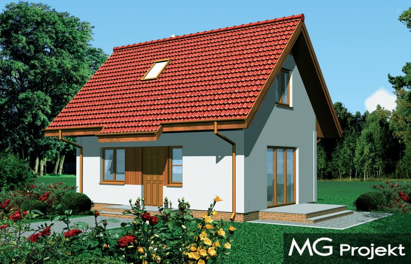 Sosenka to mały, zgrabny domek, mogący pełnić funkcję letniskowego, ale również całorocznego. Jego zaletami są właściwe proporcje, nadające estetyczny wygląd budynku, funkcjonalne wnętrze oraz prosta, tania w budowie konstrukcja. Pracownia zaprojektowała kilka wersji projektu: powiększoną o 1 metr, z dobudowanym garażem lub wiatą, z gankiem wejściowym, z balkonem i z podcieniem nad tarasem, czy z pomieszczeniem gospodarczym. Posiadamy wersje domu w technologii murowanej i szkieletowej. Projekt dostępny jest też w odbiciu lustrzanym.