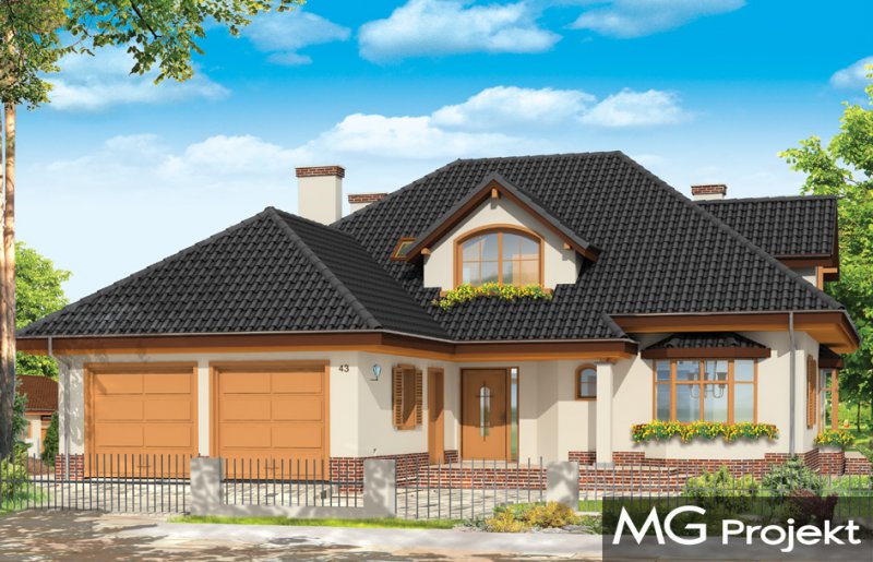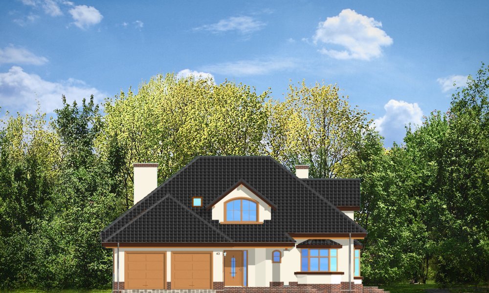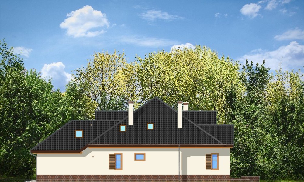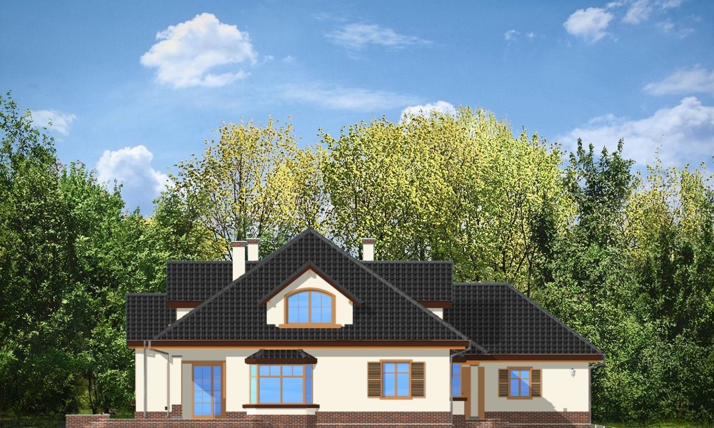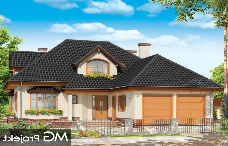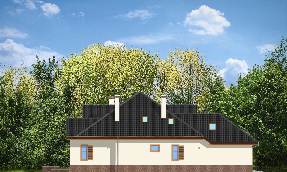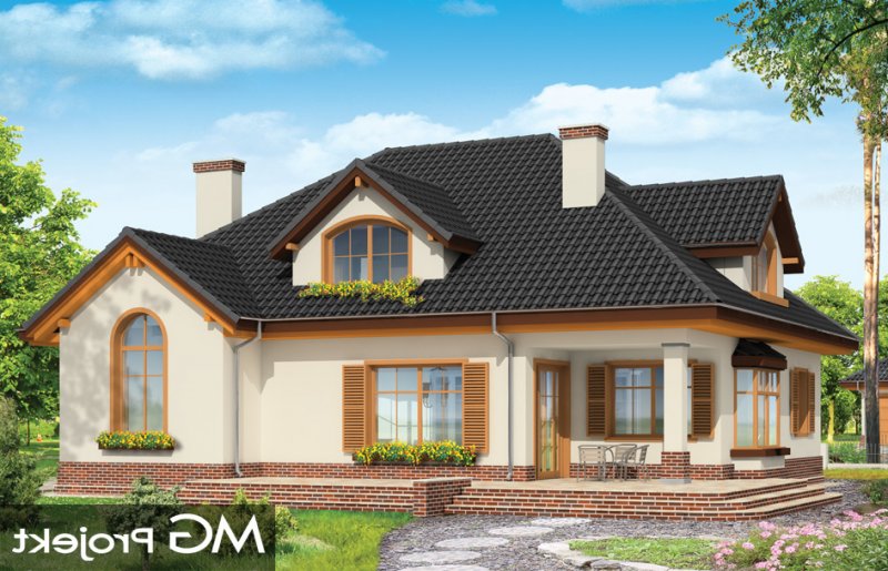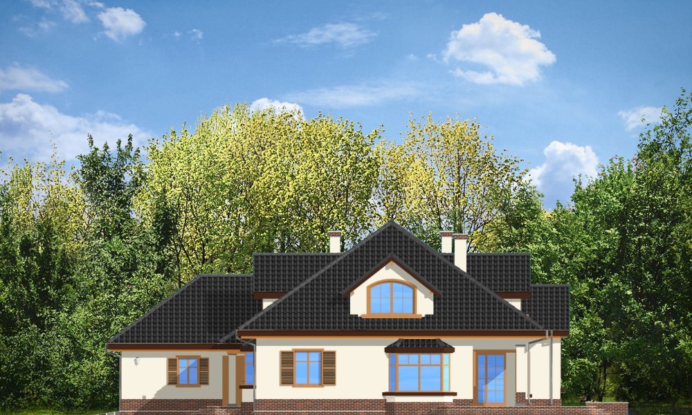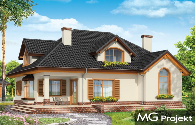 Sympatyczny to parterowy dom z poddaszem. Budynek przystosowany dla 4-5 cioosobowej rodziny. Spokojna, powściągliwa sylwetka, z dużym wielospadowym dachem mieści w sobie bardzo funkcjonalne, przemyślane wnętrze. Rozwiązania zastosowane w domu Sympatyczny, takie jak duża sień wejściowa, ładny przestrzenny holl z wygodnymi schodami, duża kotłownia, garaż czy spiżarnia sprawiają, że przyszłym właścicielom będzie się dobrze mieszkało w ich domu. Salon połączony z holem i jadalnią tworzą ładne jednoprzestrzenne wnętrze, otwarte na ogród dzięki dużym oknom. Na poddaszu każdy pokój ma swoją garderobę, a duża łazienka została połączona z pralnią nad garażem. Pracownia posiada też wersję projektu w odbiciu lustrzanym.