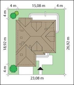 - Min. wymiary działki 23.08x23.08 m