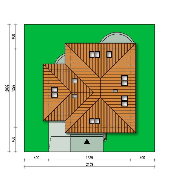 Syntia wersja C wyróżnia się swym atrakcyjnym wyglądem będącym połączeniem cech tradycyjnego domu ze spadzistym dachem z ciekawą bryłą i nowoczesnym zastosowaniem materiałów wykończeniowych. Dostępna jest wersja z garażem dwustanowiskowym.
