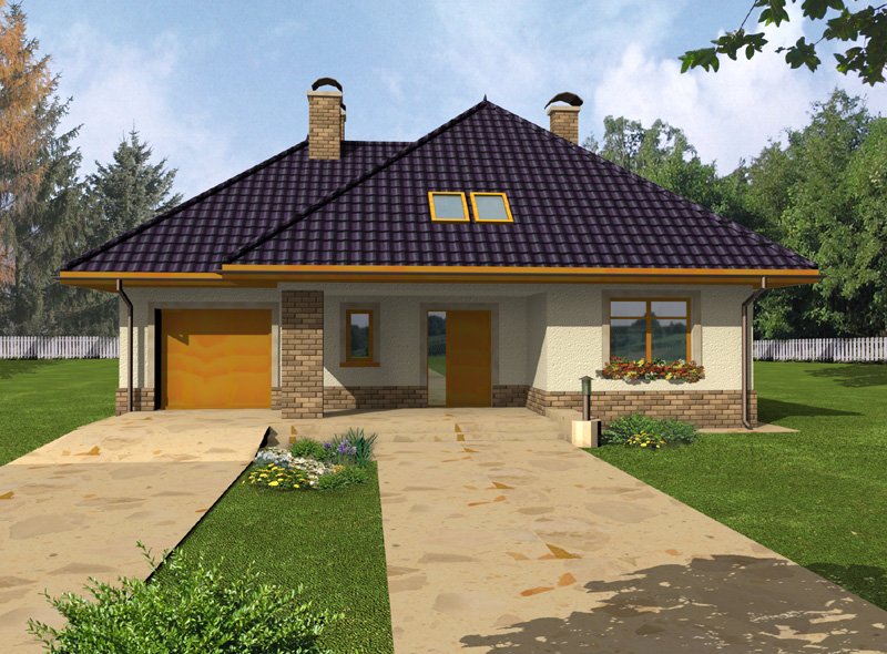 Syntia wersja C to wygodny parterowy, niepodpiwniczony dom z użytkowym poddaszem i wbudowanym garażem, przeznaczony dla 4-6 osobowej rodziny.