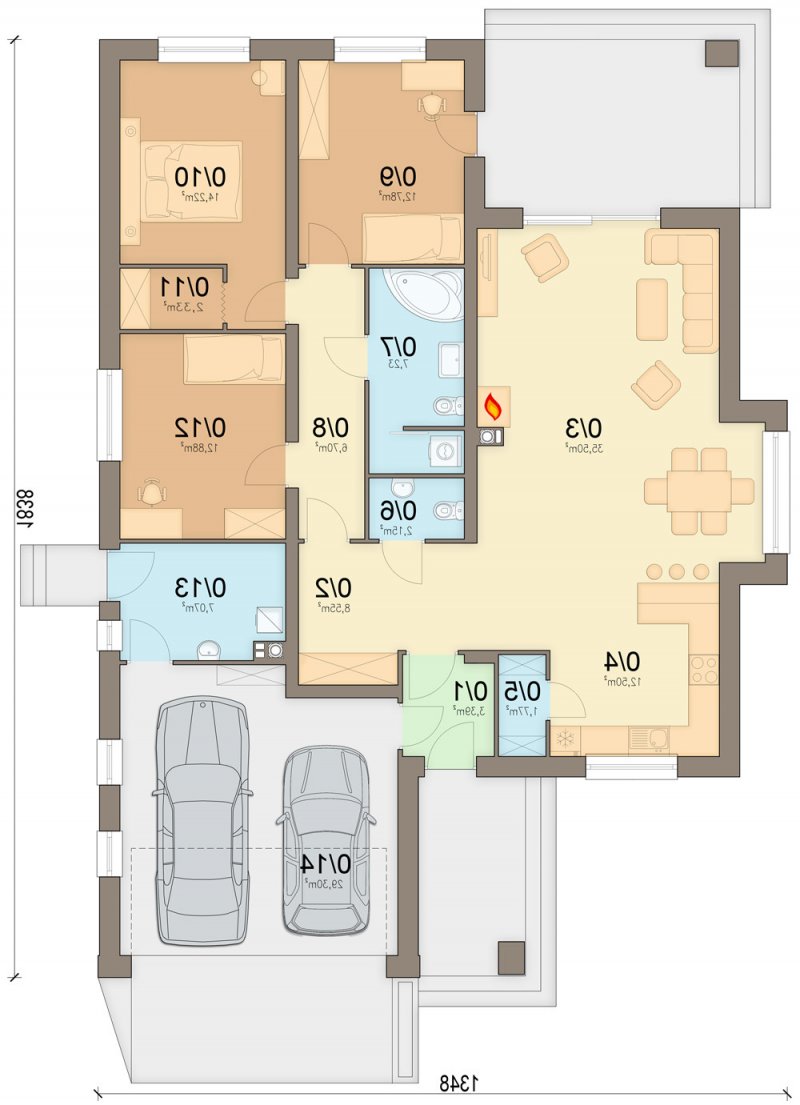 Kotłownia oddzielona jest garażem, co jest szczególnie pożądane przez użytkowników kotła na paliwo stałe.