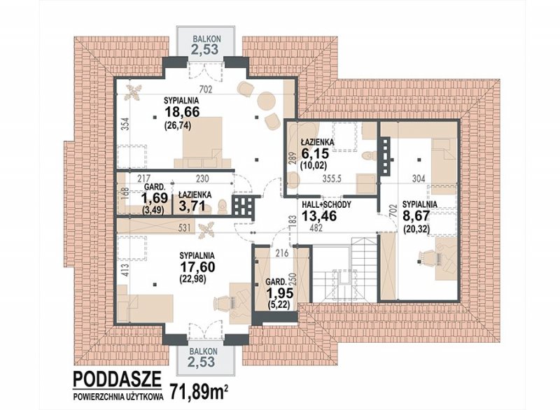 dach o konstrukcji drewnianej z pokryciem z dachówki ceramicznej, cementowej lub blachodachówki
