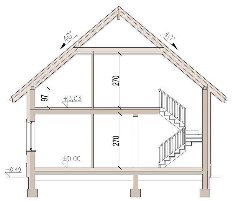 - Kąt nachylenia dachu 40.00°