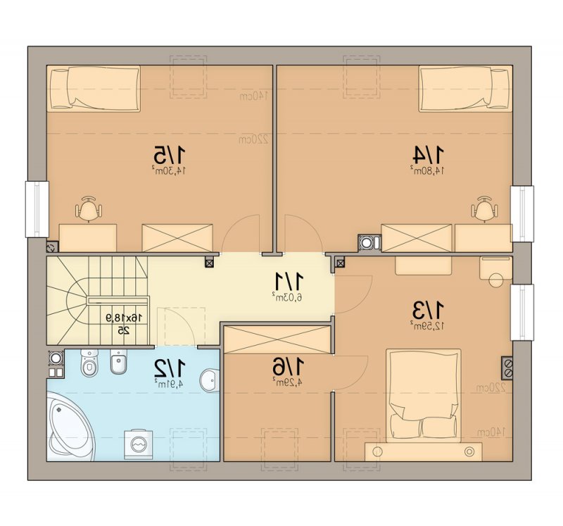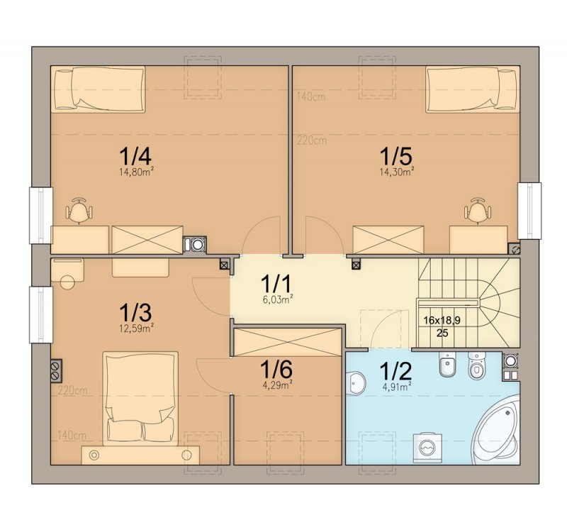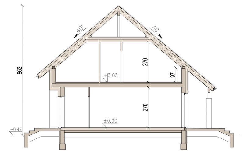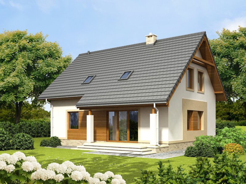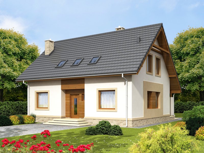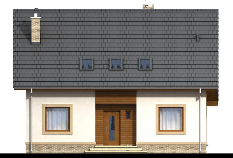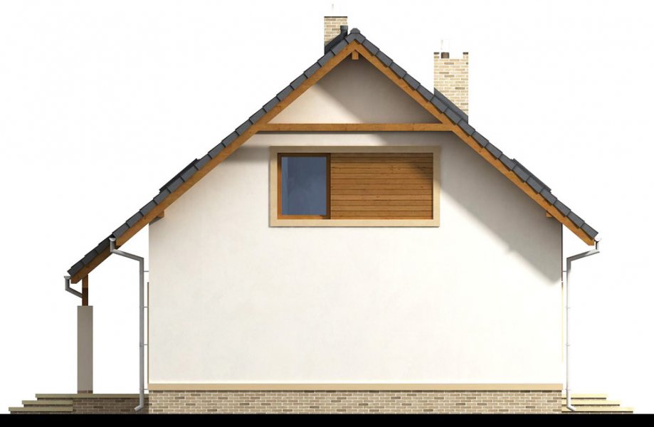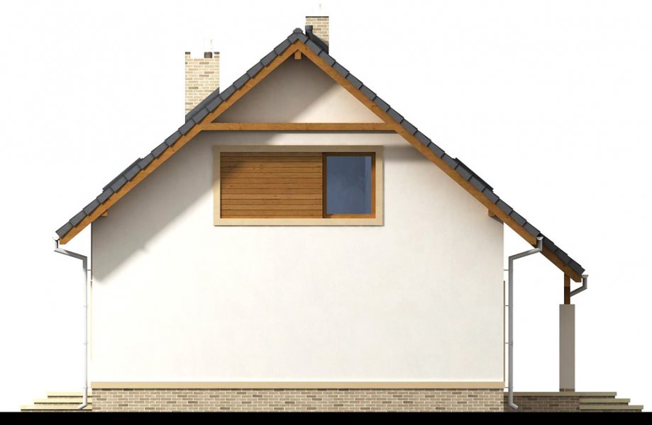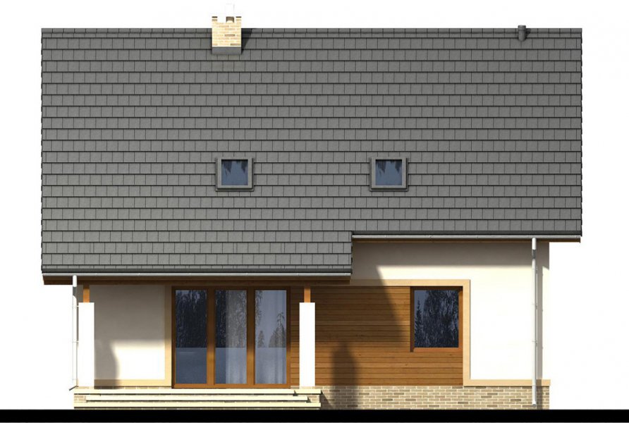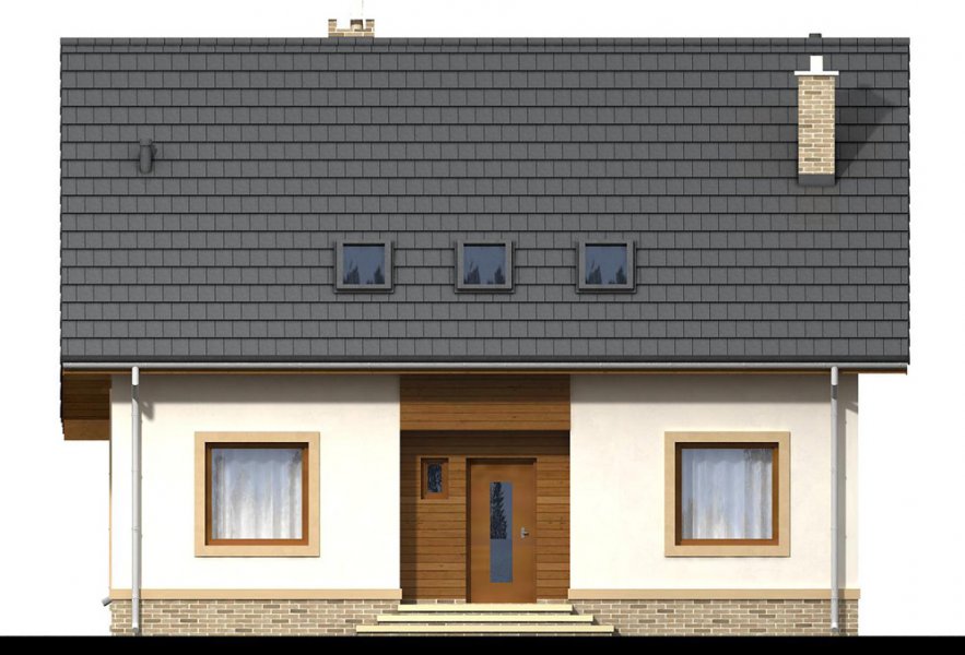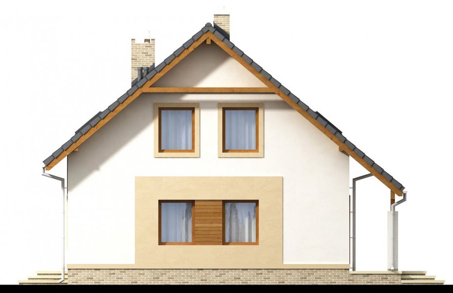 Tamarillo 4 to mały uroczy domek, który świetnie wpisuje się w każde otoczenie, a zarazem posiada swój oryginalny styl. Dzięki bardzo prostej formie jest tani i łatwy w budowie. Dobrze rozplanowane pomieszczenia zapewnią wygodę w użytkowaniu 4-5 osobowej rodzinie. Dużym atutem projektu jest otwarty salon z miejscem na jadalnię i centralnie umieszczonym kominkiem, oraz duża kuchnia ze spiżarnią. Na parterze zaprojektowano gabinet, który może służyć również jako pokój gościnny, oraz dodatkową łazienkę, dzięki czemu poddasze pozostanie strefą wyłącznie dla domowników. Dom posiada kotłownię , z wejściem z wiatrołapu. Jej rozmiary pozwalają zainstalować kocioł na paliwo stałe. Na poddaszu znajdują się dwa komfortowe pokoje, sypialnia połączona z garderobą, oraz duża łazienka. Dostateczna wysokość ściany kolankowej umożliwia w pełni wykorzystanie powierzchni pod skosami dachu. Prosta bryła i nieskomplikowana konstrukcja, zdecydowanie ułatwią i przyspieszą realizację. Aby zapewnić niskie koszty eksploatacji i nie zwiększać kosztów budowy, w projekcie zastosowano rozwiązania energooszczędne – na poziomie ekonomicznie uzasadnionym.