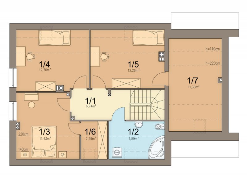 Dostateczna wysokość ściany kolankowej umożliwia w pełni wykorzystanie powierzchni pod skosami