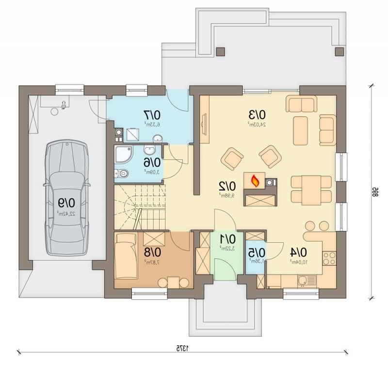 Dobrze rozplanowane pomieszczenia zapewnią wygodę w użytkowaniu 3-5 osobowej rodzinie.