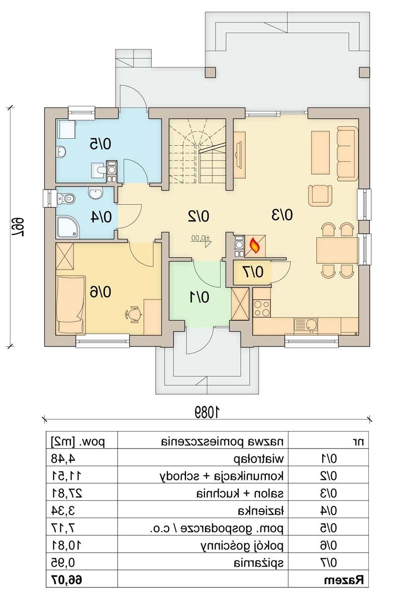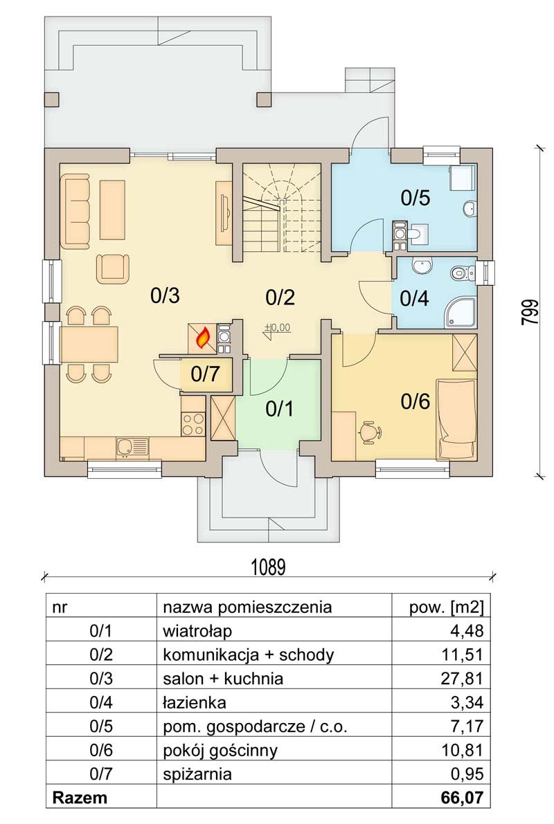 Tiramisu to mały, urokliwy domek przeznaczony dla 4-5 osobowej rodziny. Komfortową przestrzeń dla życia rodzinnego i towarzyskiego zapewnia otwarty salon połączony z kuchnią. Dodatkowym atutem domu jest zlokalizowany na parterze pokój gościnny ( gabinet ) , oraz łazienka, dzięki czemu poddasze pozostanie strefą wyłącznie dla mieszkańców domu.Nie zapomniano również o pomieszczeniu gospodarczym z wyjściem na ogród oraz o pomieszczeniach pomocniczych - spiżarni i garderobie. Prosta bryła i nieskomplikowana konstrukcja, sprawią że dom będzie tani i łatwy w budowie.W projekcie zastosowano wyłącznie typowe i sprawdzone rozwiązania technologiczne, co znacznie ułatwi realizację i zminimalizuje koszty eksploatacji.