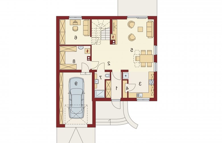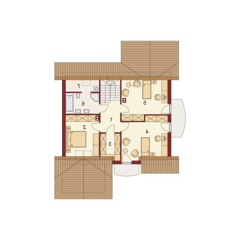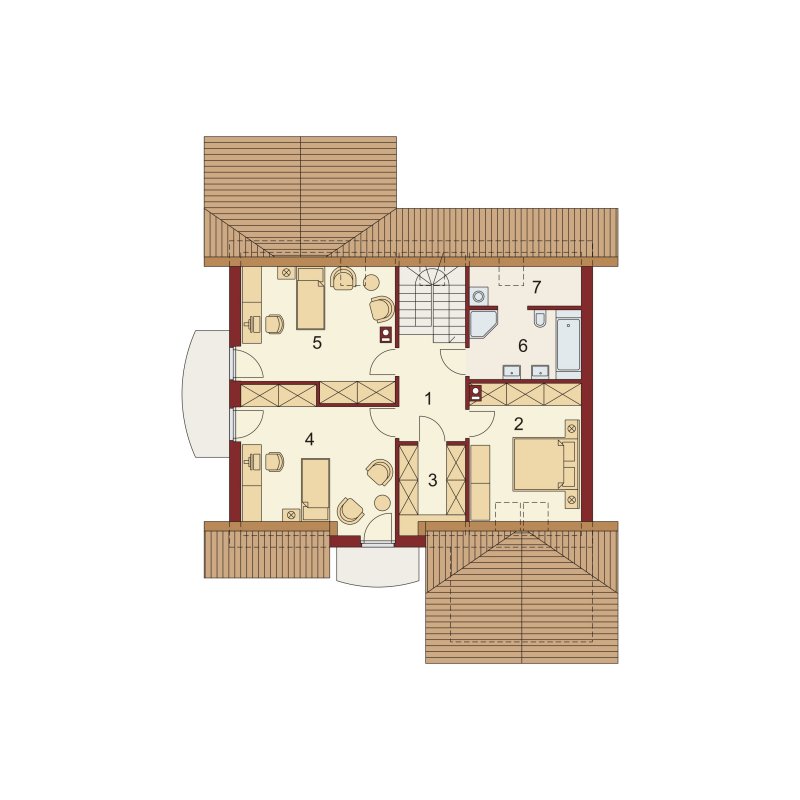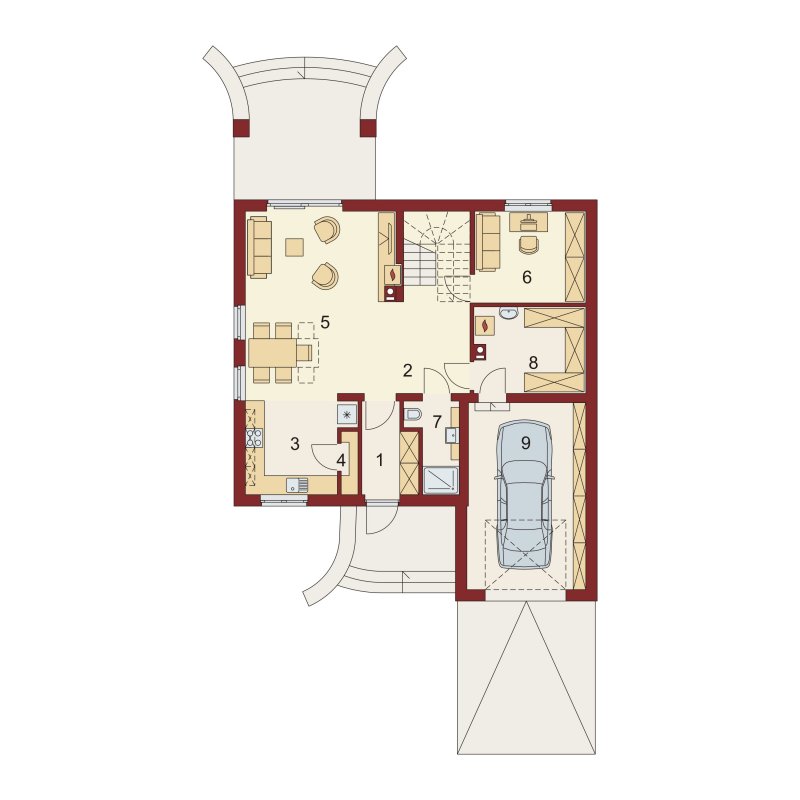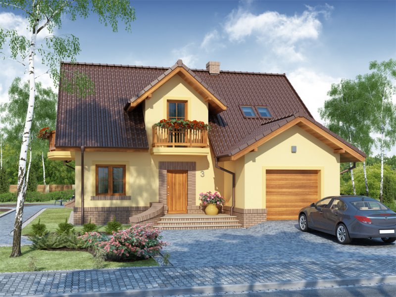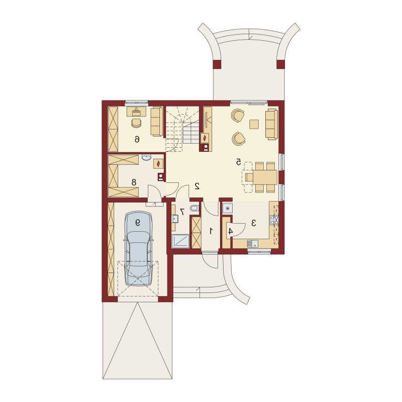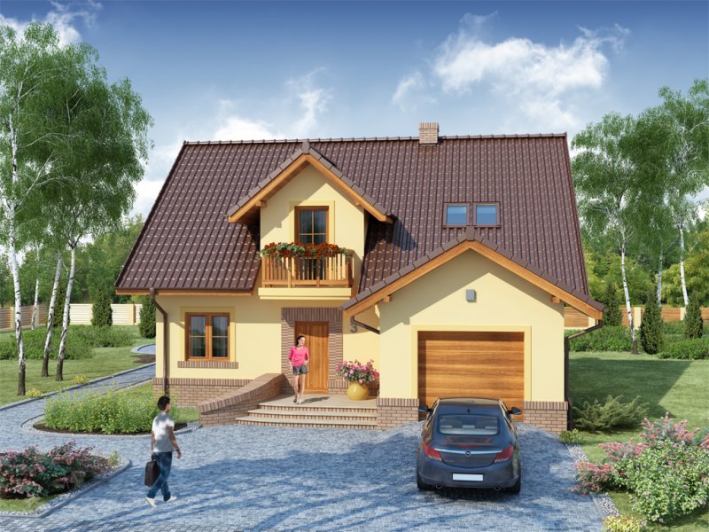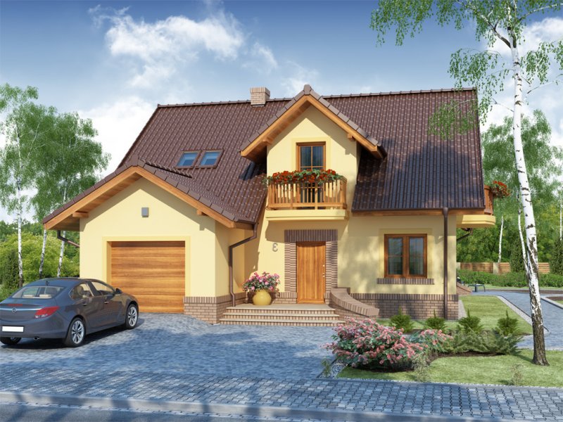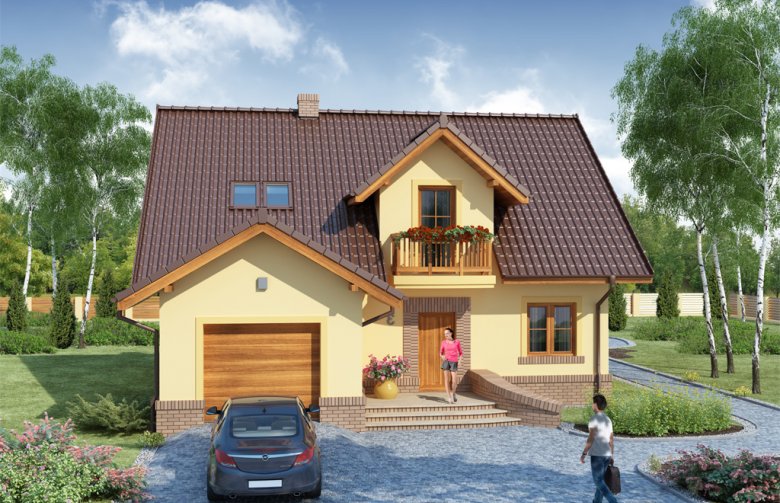 Klasyczny w formie, niewielki dom doskonale nadający się zarówno na miejską jak i podmiejską działkę. Wera przeznaczona jest dla 4-5 osobowej rodziny ceniącej czytelnie rozwiązane układy pomieszczeń i energooszczędność. Po lewej stronie od wejścia znajduje się część dzienna mieszcząca jednorodną przestrzeń kuchni oraz salonu z jadalnią. W ramach adaptacji kuchnię można oddzielić ścianką działową, a w miejscu spiżarni zamontować wysoką, pojemną szafkę. Na parterze w strefie gospodarczej znajduje się garaż z przejściem do części mieszkalnej, oraz kotłownia. Poddasze mieści trzy sypialnie, obszerną łazienkę i dostępną z korytarza garderobę. DOM POSIADA KOTŁOWNIĘ NA PALIWO STAŁE.