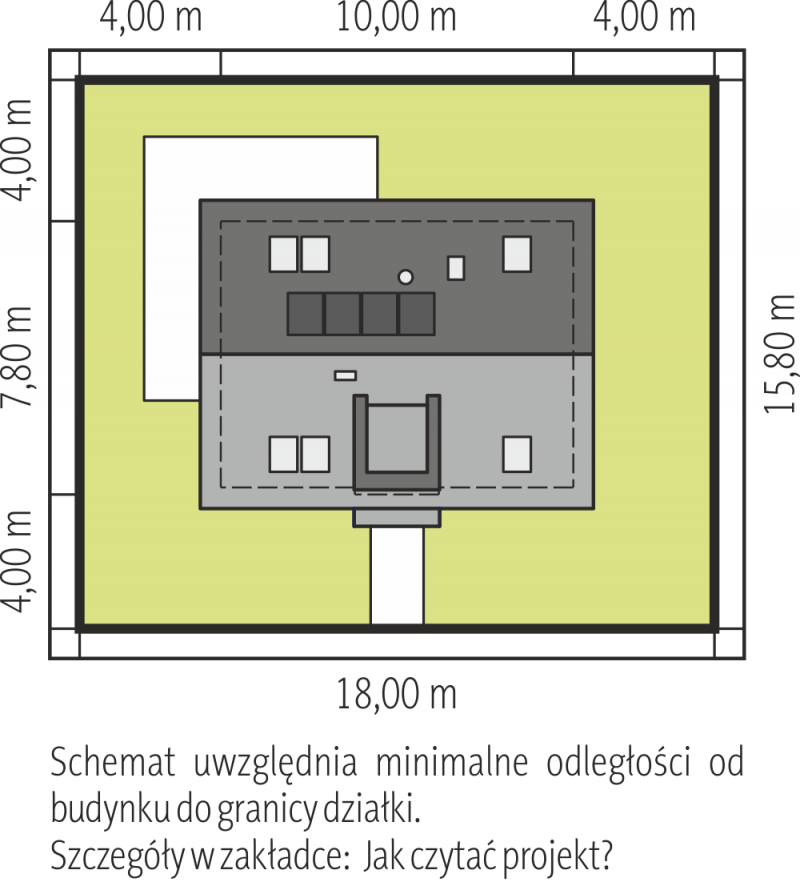 - Min. wymiary działki 18.00x15.80 m