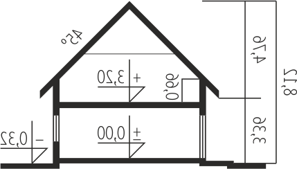 - Kąt nachylenia dachu 45.00°