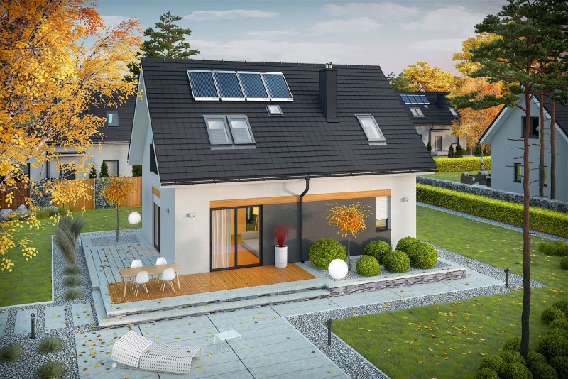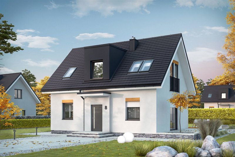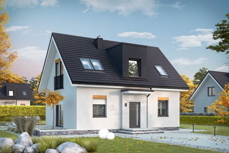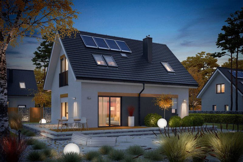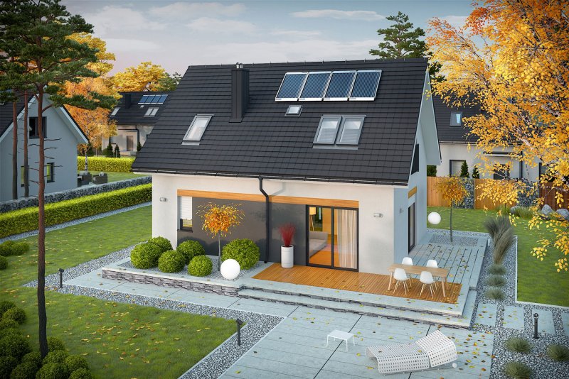 Witek II to nowoczesny i energooszczędny dom, w którym mieszka się po prostu wspaniale. Mimo swojej prostej konstrukcji, projekt prezentuje się atrakcyjnie i niebanalnie. Jego dużym atutem jest bardzo funkcjonalny układ pomieszczeń, dzięki któremu codzienne użytkowanie budynku jest niezwykle wygodne i przyjemne. Do dyspozycji domowników jest również przestronny taras – wymarzone miejsce na obiad pod chmurką i leniwy relaks w promieniach słońca.