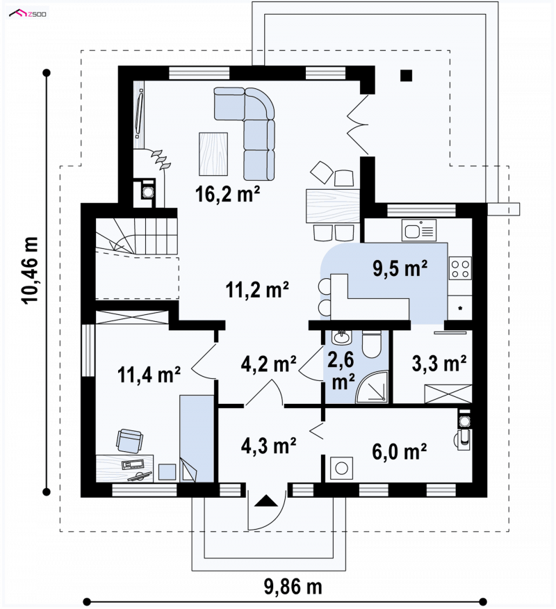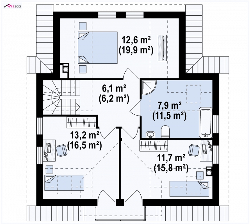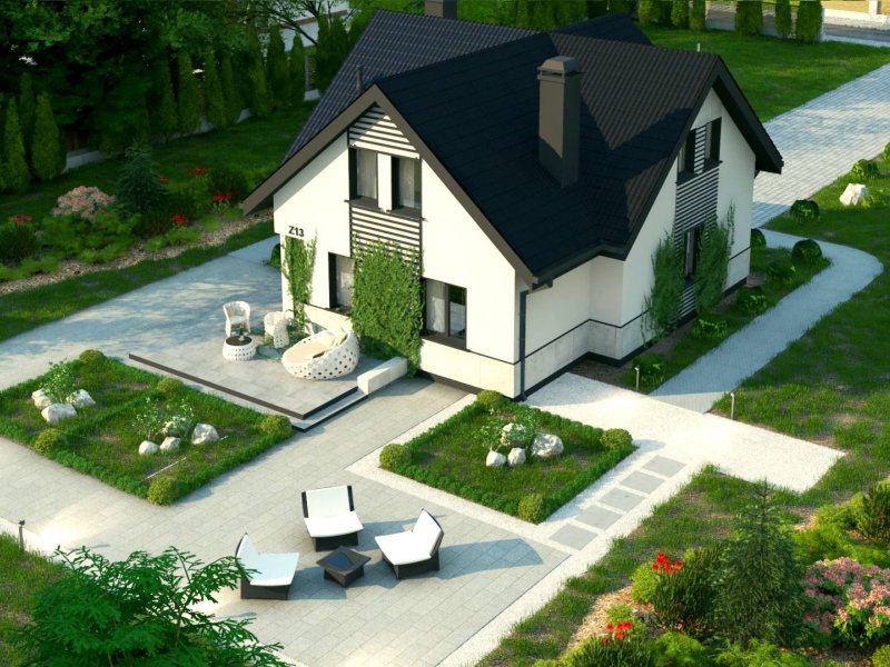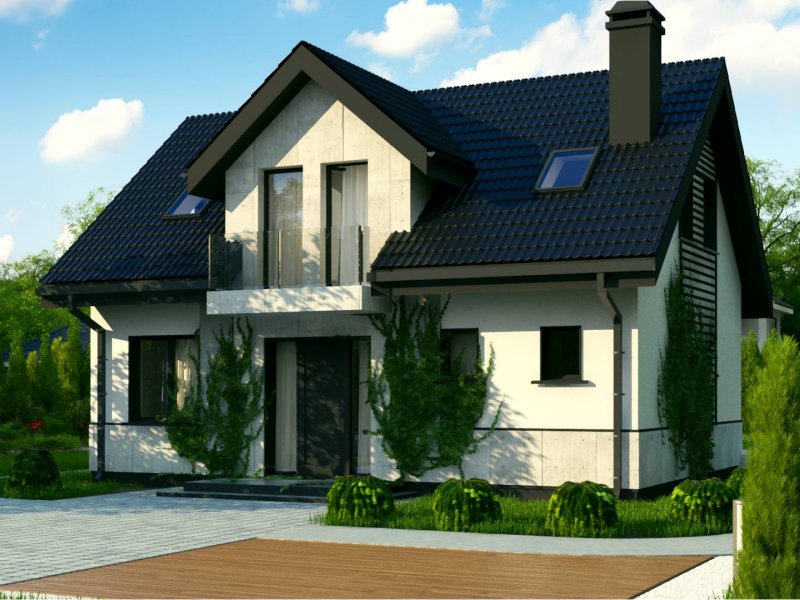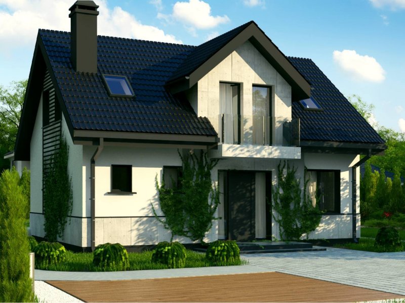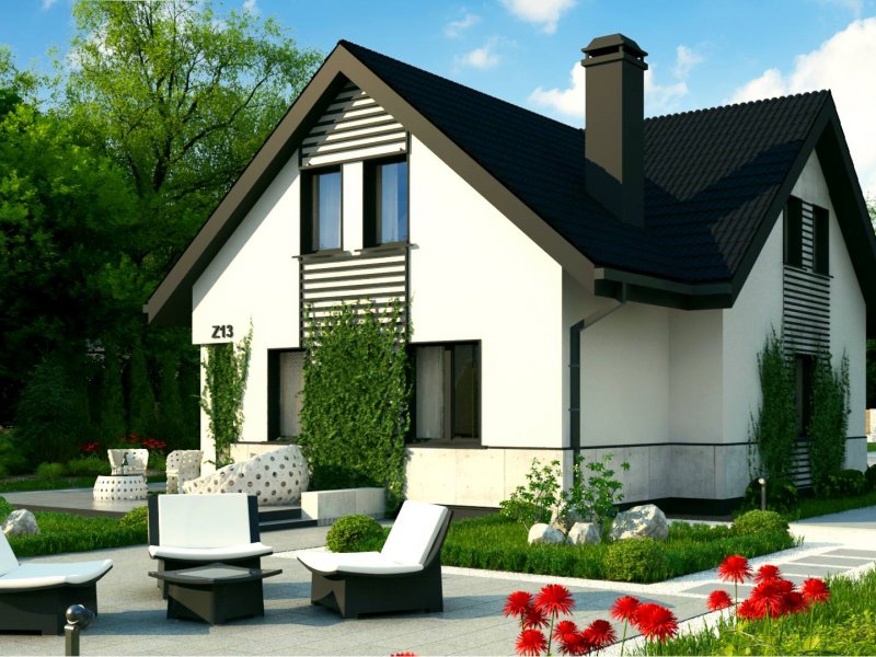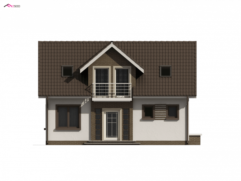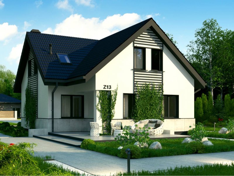 Z13 to wygodny i funkcjonalnym dom o przyjemnym wyglądzie zewnętrznym. Zgrabna bryła dobrze komponuje się zarówno w zwartej zabudowie jak i otwartej przestrzeni. Strefę wejściową podkreśla balkon chroniący jednocześnie przed wpływami atmosferycznymi.