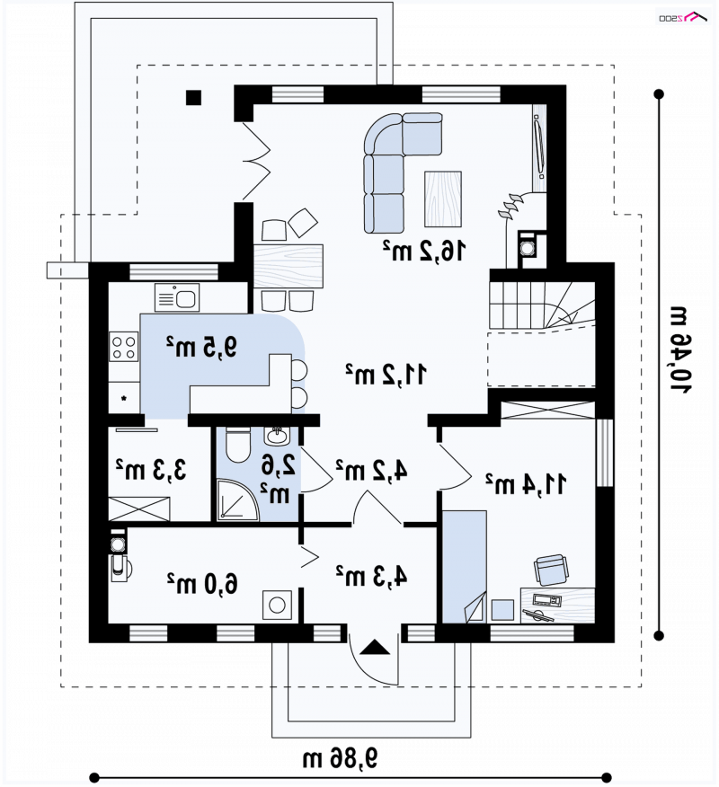 - Min. wymiary działki 18.46x17.86 m