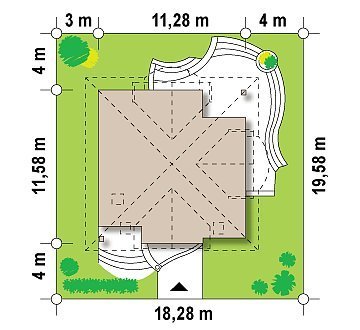 - Min. wymiary działki 19.82x18.28 m