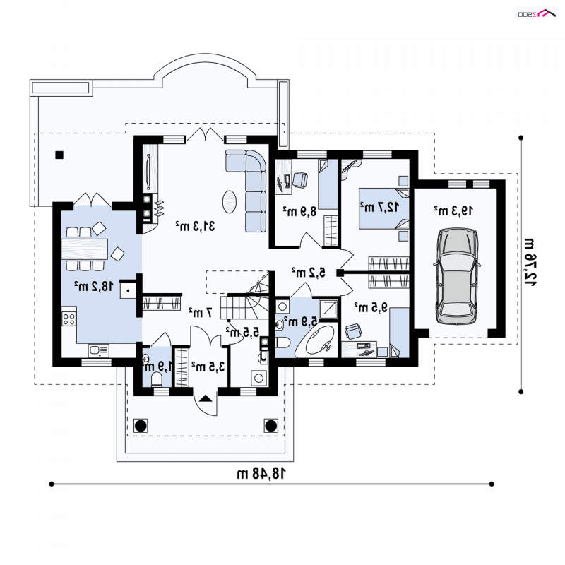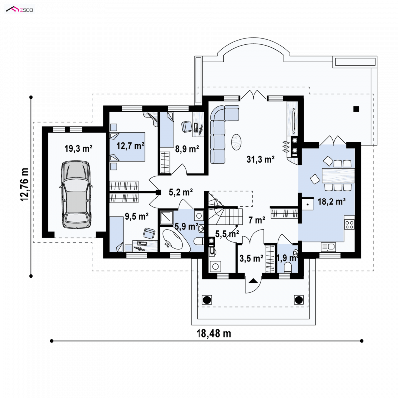 Projekt domu Z2 GL - to wariant podstawowy, w którym doprojektowano garaż po lewej stronie (19,7m2).