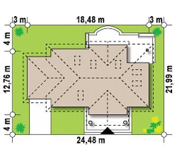 - Min. wymiary działki 19.07x24.48 m