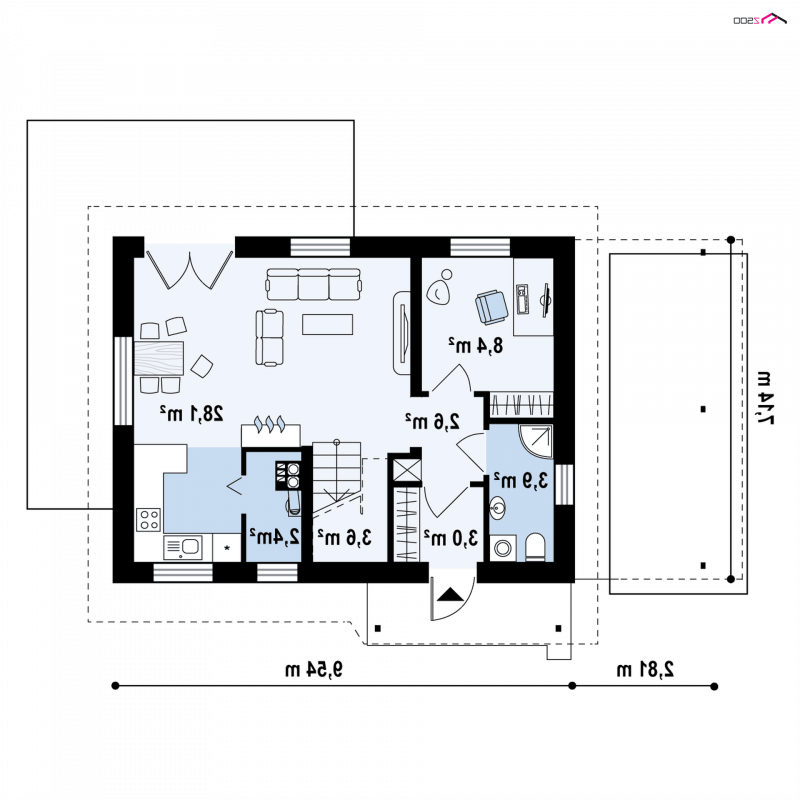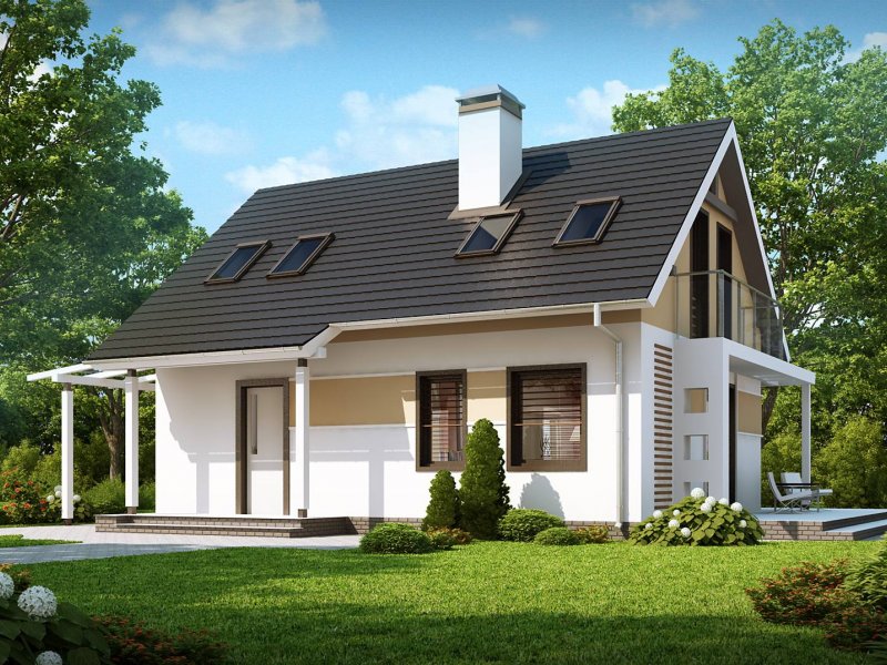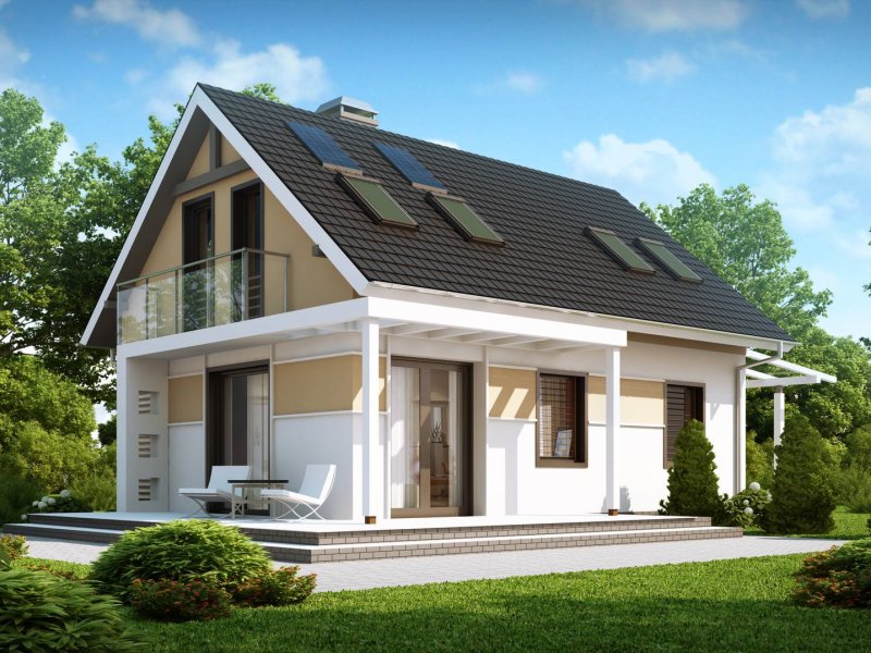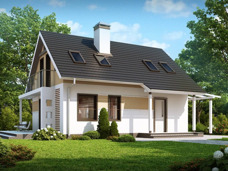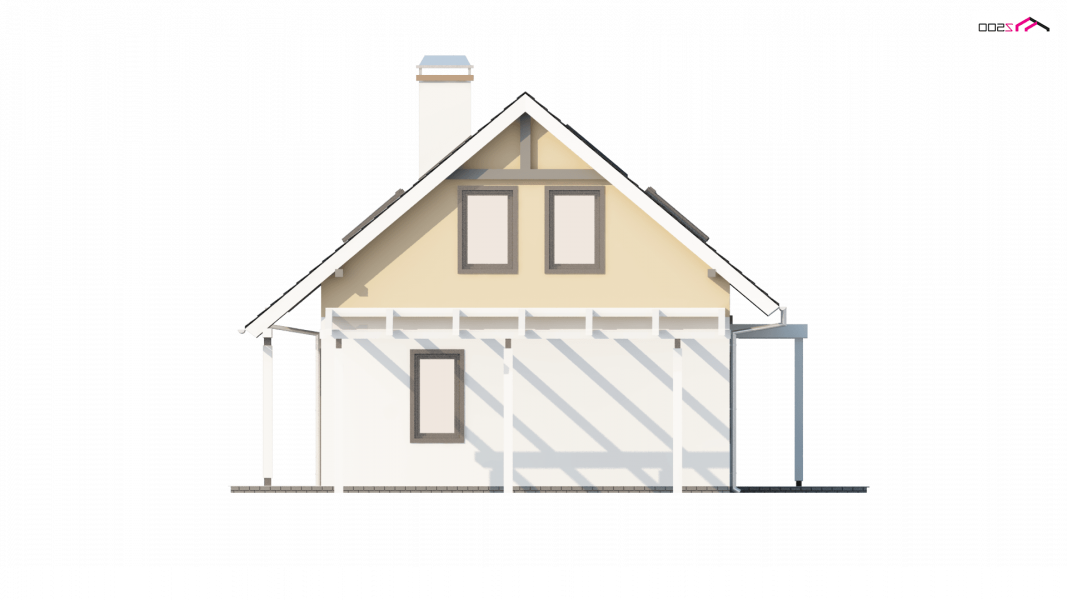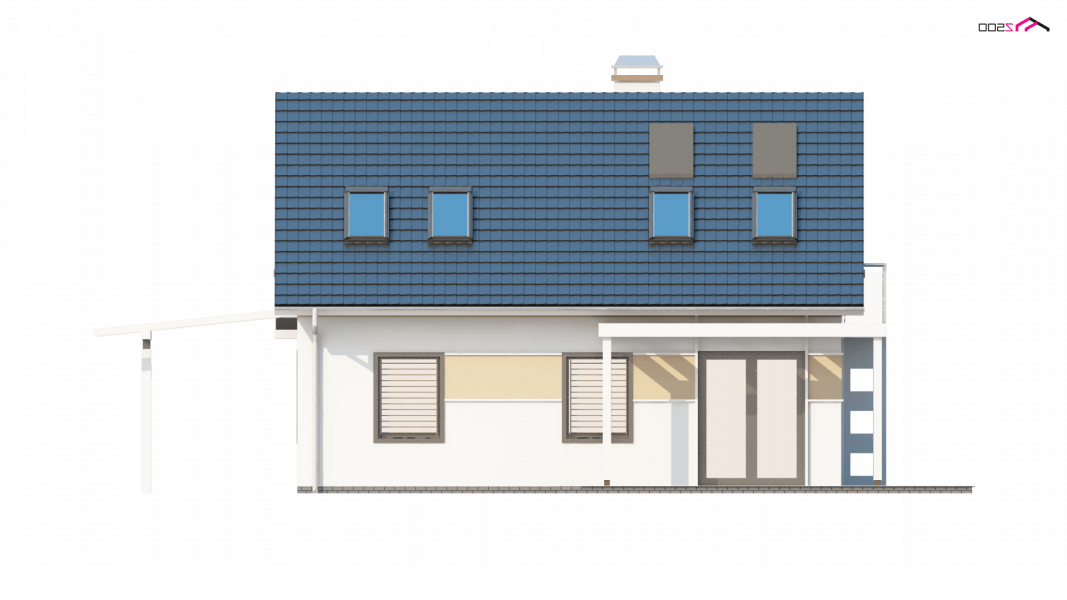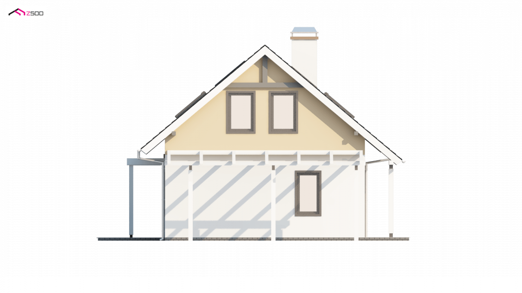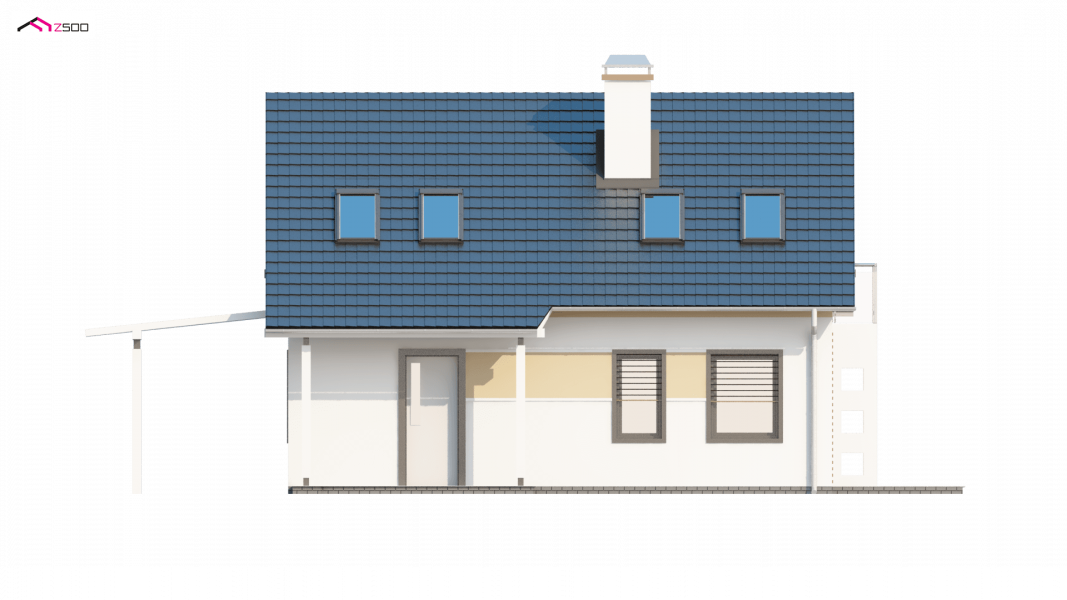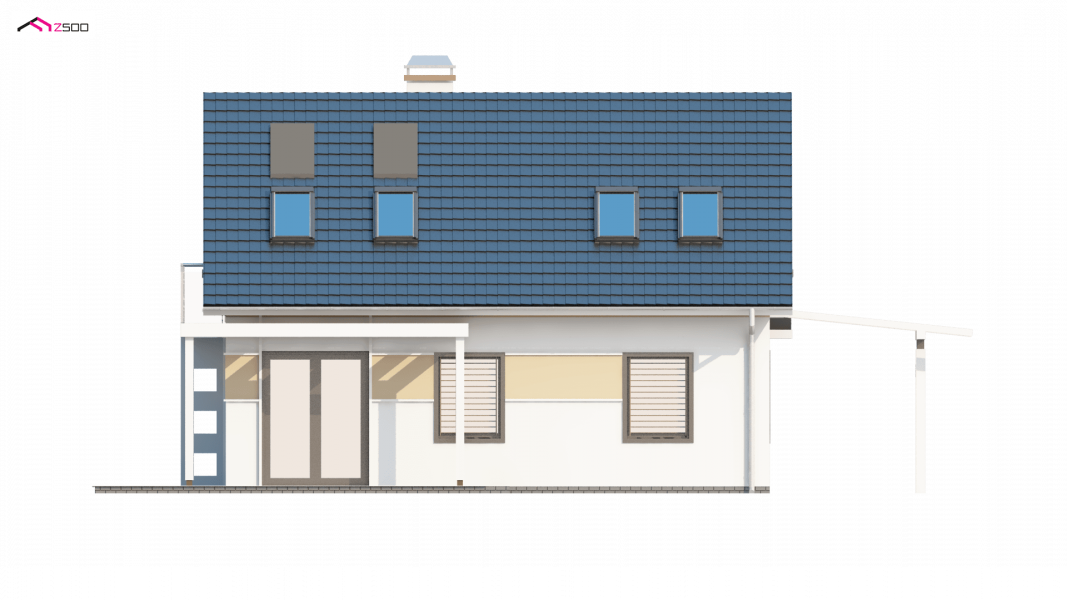 To niewielki i bardzo funkcjonalny projekt domu. Zgrabna, prosta bryła jest szybka i łatwa w budowie. Warto zwrócić uwagę również na funkcjonalną wiatę garażową.