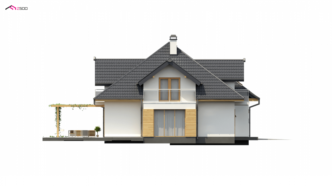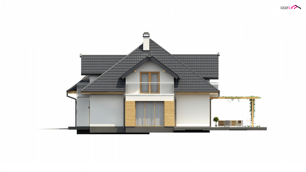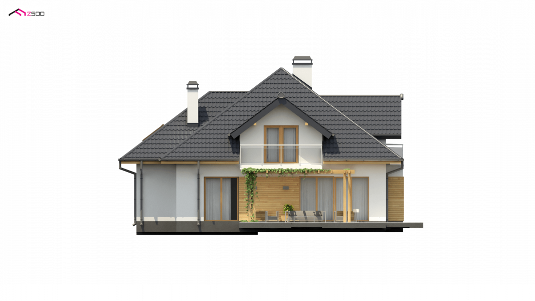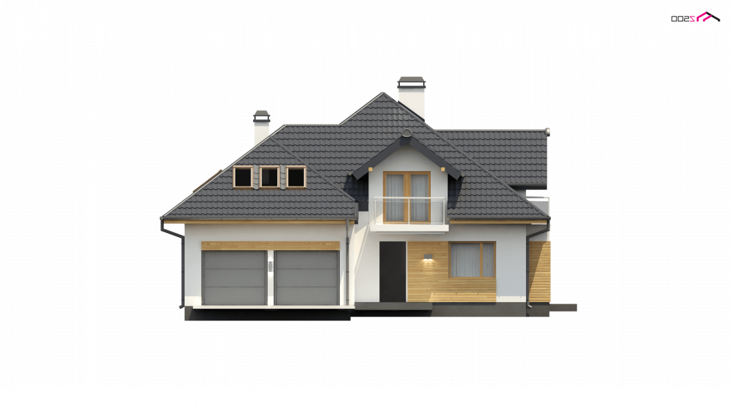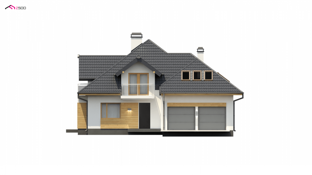 Z270 to projekt domu z poddaszem użytkowym. Poprzez wykończenie elewacji drewnianymi elementami dom nabrał ciekawego i niepowtarzalnego wyglądu.