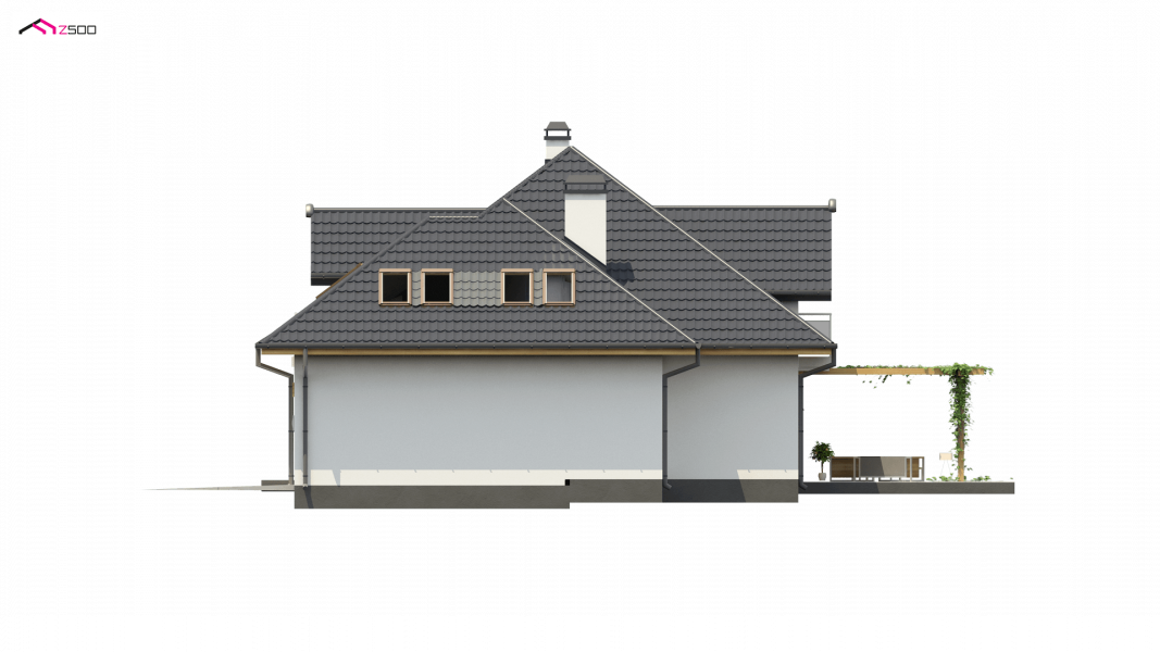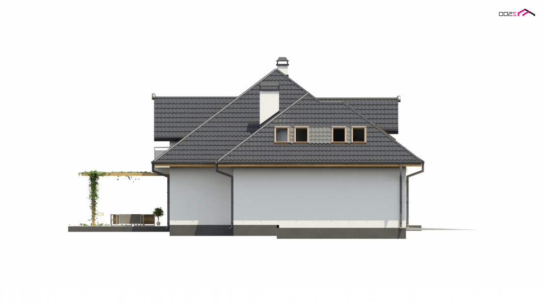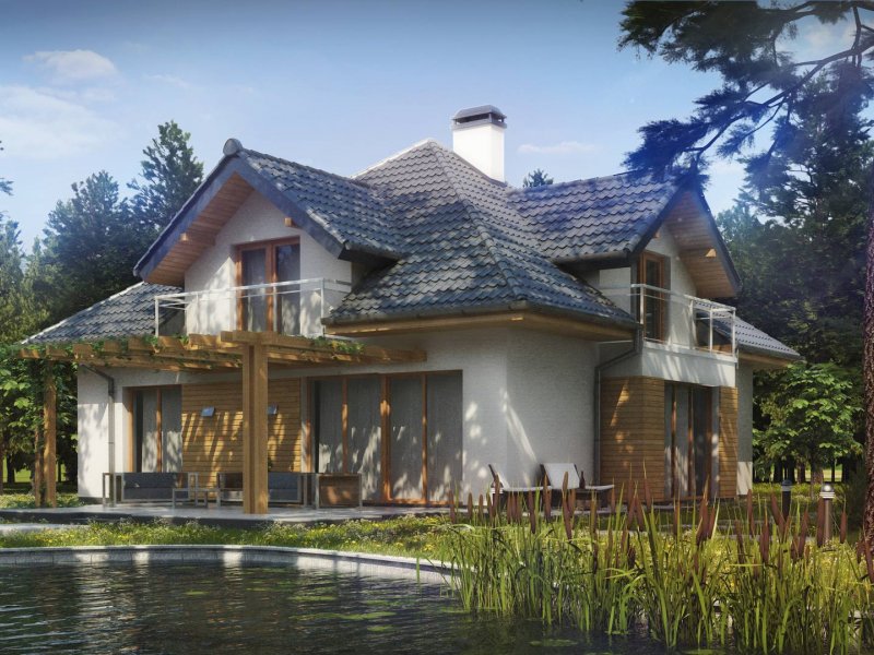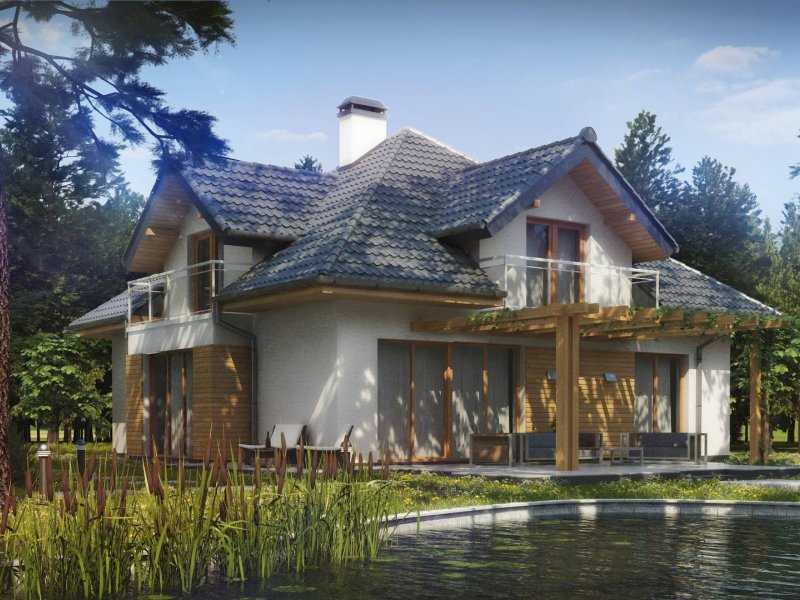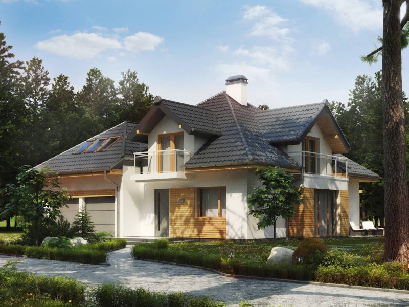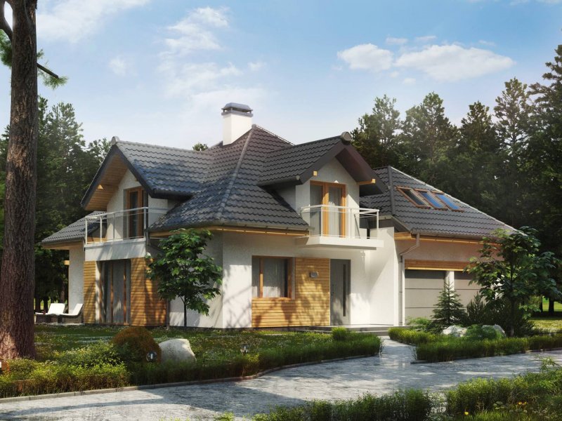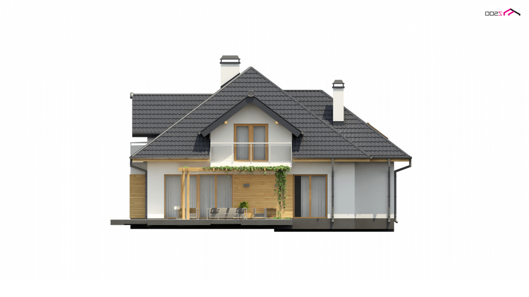 Z270 to projekt domu z poddaszem użytkowym. Poprzez wykończenie elewacji drewnianymi elementami dom nabrał ciekawego i niepowtarzalnego wyglądu.