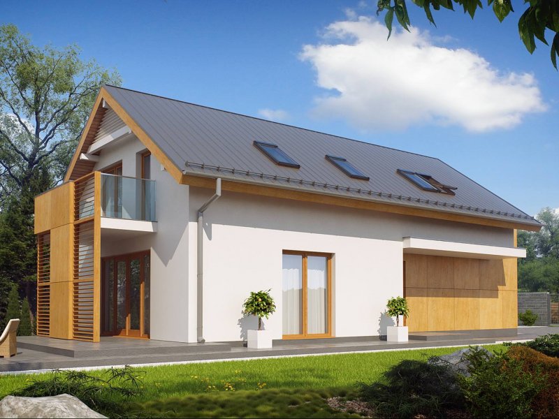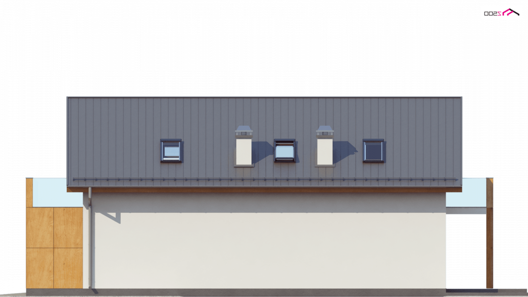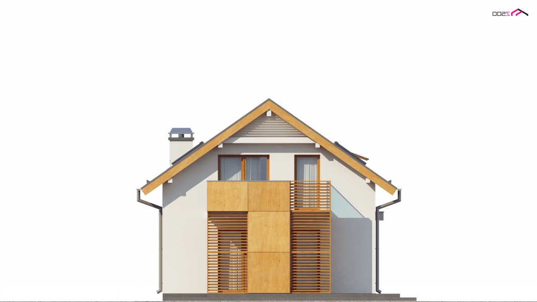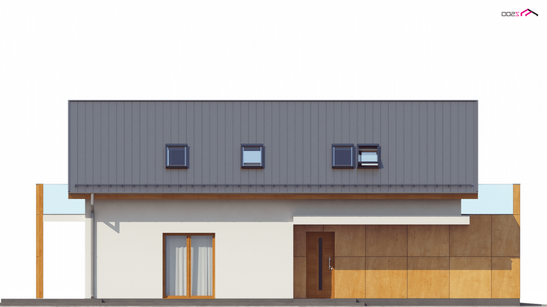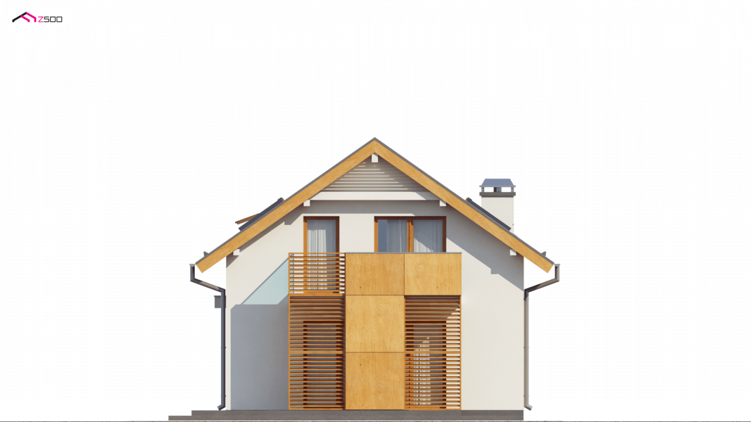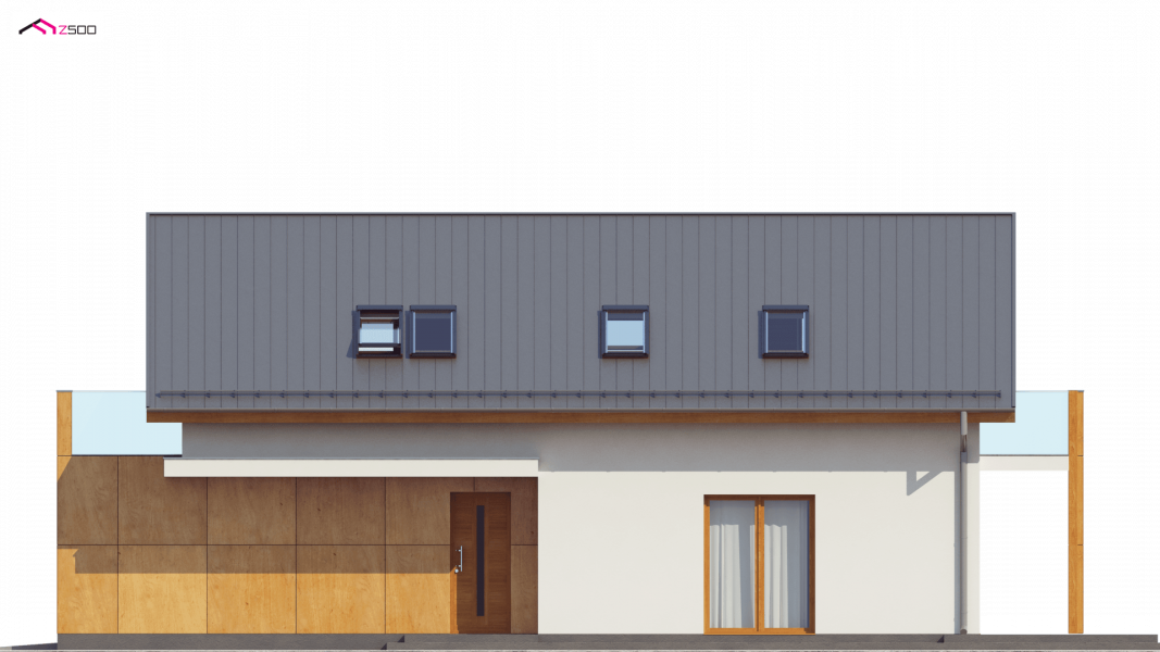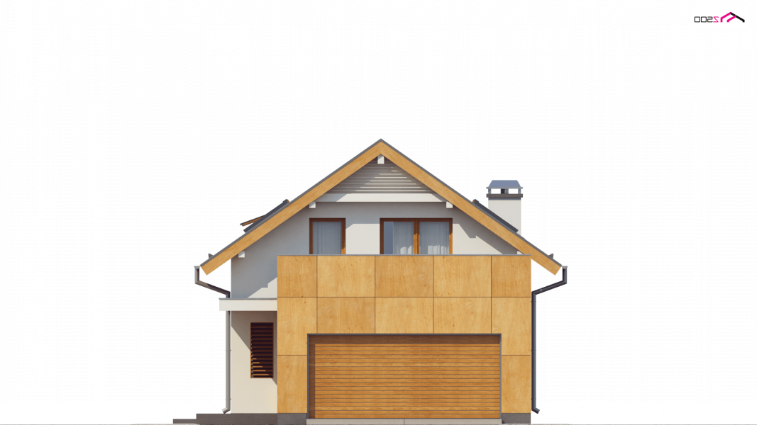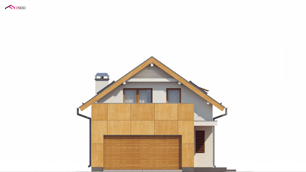 Z292 jest domem jednorodzinnym pasującym na wąską działkę, parterowym z poddaszem użytkowym z garażem dwustanowiskowym od frontu. Prosta bryła domu o nieskomplikowanej konstrukcji przykryta dwuspadowym dachem pozwoli na szybką i niedrogą budowę oraz późniejszą eksploatację. Formę domu urozmaica wysunięty z przedniej części garaż, nad którym zaprojektowano balkon, oraz zadaszenia wejścia głównego oraz tarasu. Jasną, stonowaną kolorystykę ozdabiają drewniane płyty elewacyjne oraz ażurowe kolumny "podtrzymujące" zadaszenie nad tarasem.