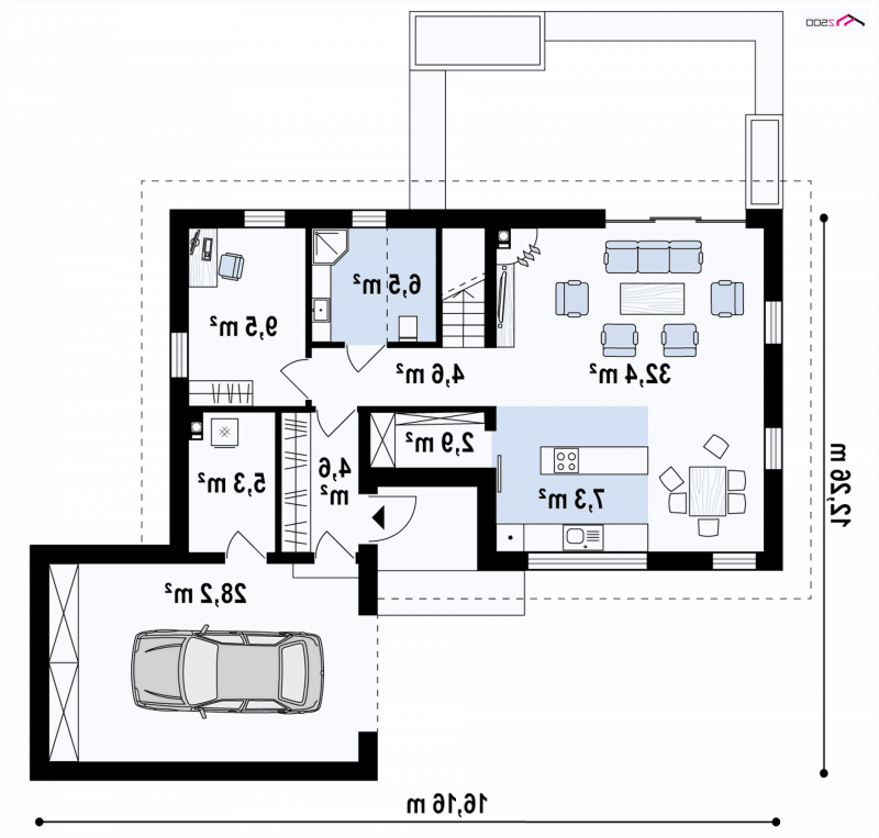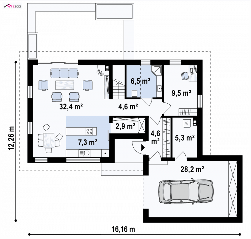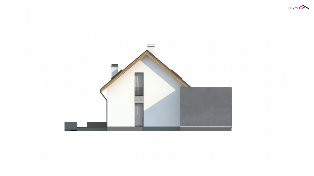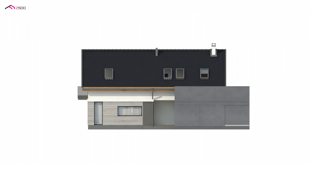 Z370 to klasyczny projekt domu jednorodzinnego z dachem dwuspadowym oraz jednostanowiskowym garażem i przylegającym pomieszczeniem gospodarczym. Pomieszczenie gospodarcze może służyć również jako schowek na narzędzia.