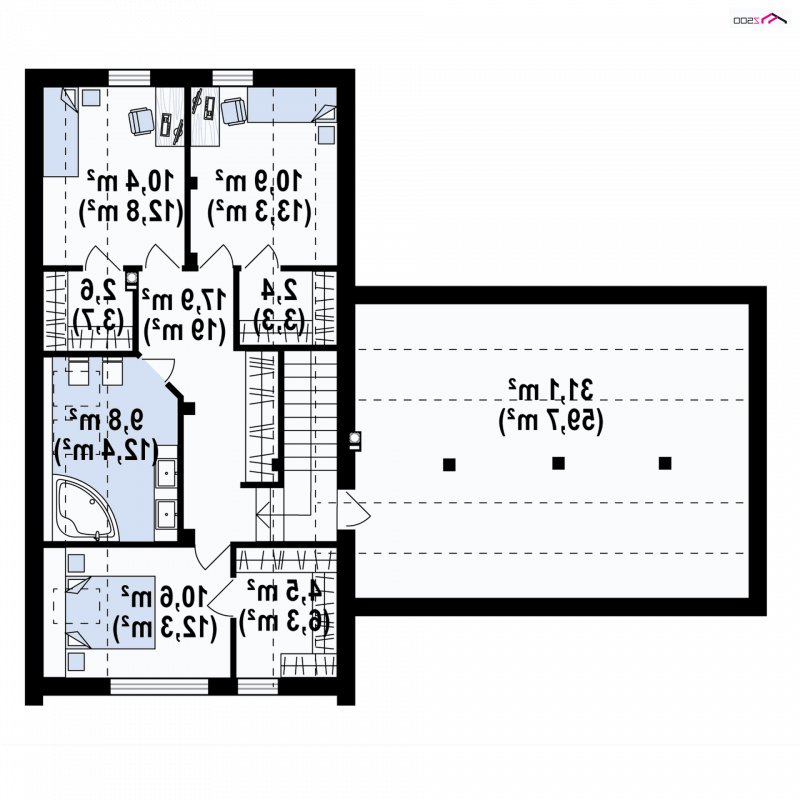 Schody „do nieba” prowadzą na poddasze, które jest naszą prywatną oazą spokoju. Mieszczą się tu trzy sypialnie, których największym atutem jest to, iż każda z nich posiada swoją prywatną garderobę. Pokój kąpielowy ma dostateczną ilość miejsca żeby móc podłączyć tam wannę, dwie umywalki oraz prysznic, jeśli i on znajdzie swoich amatorów.