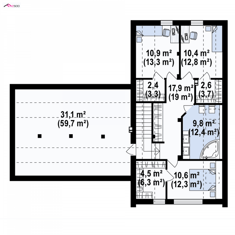 Dodatkowym plusem jest strych znajdujący się ponad garażem. Może posłużyć do swobodnej aranżacji np: jako modelarnia albo warsztat.