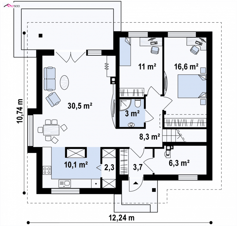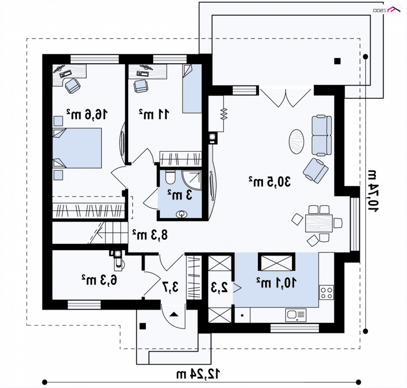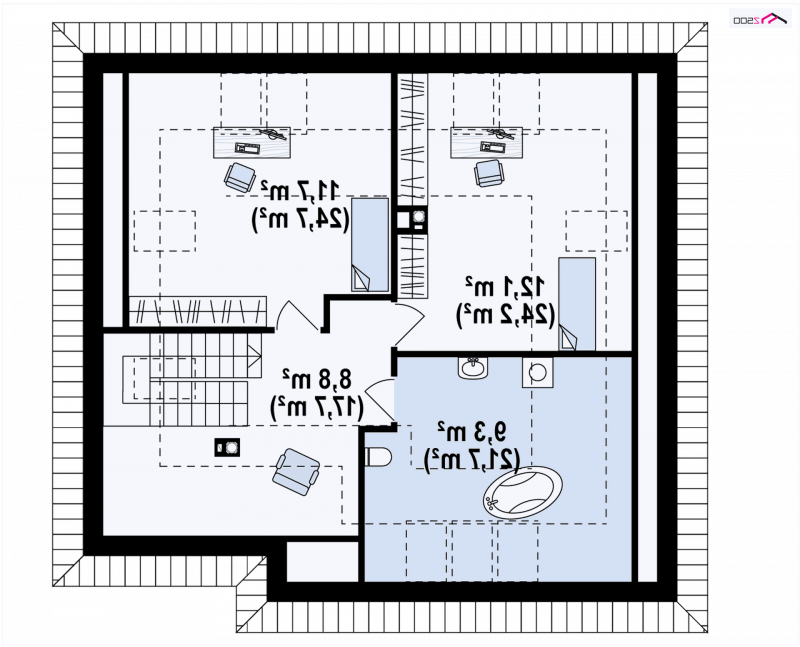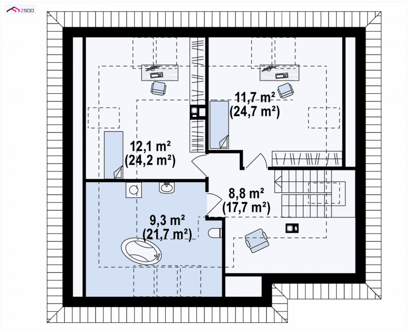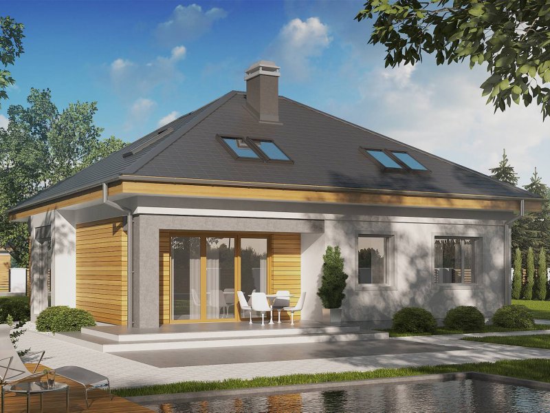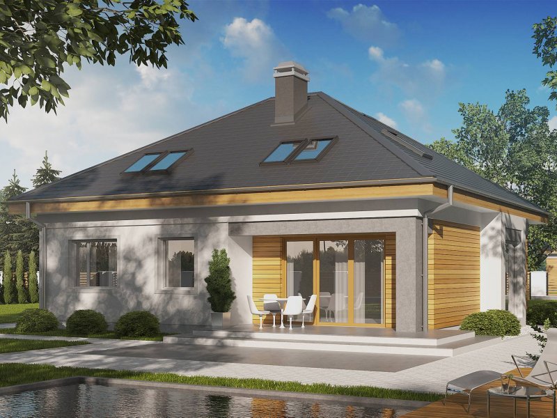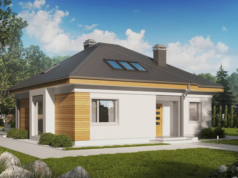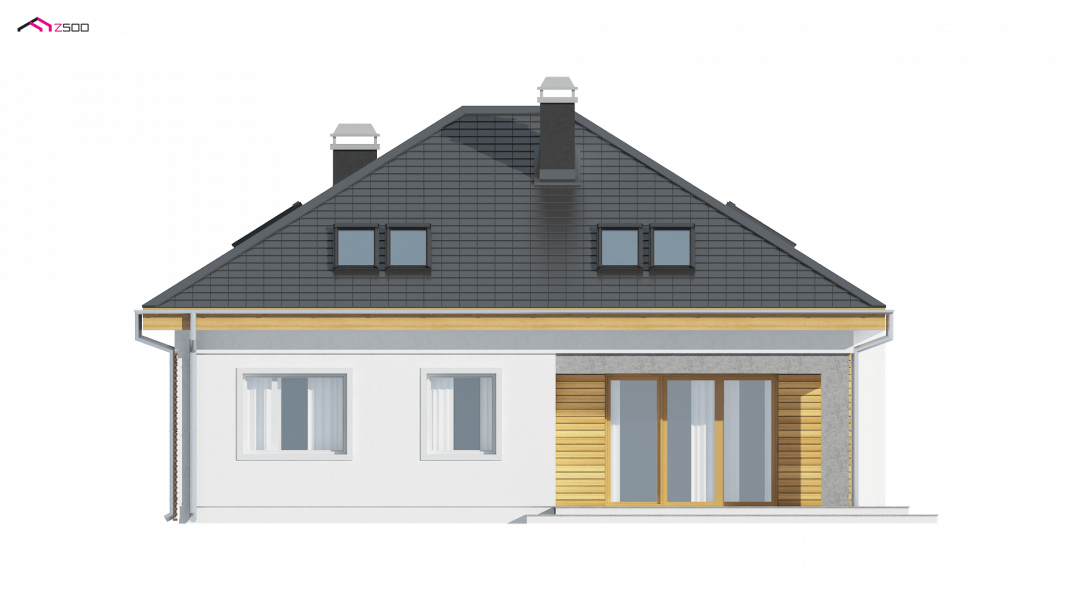 Z54 to zgrabny i funkcjonalny dom z poddaszem użytkowym. Przyszłych mieszkańców urzeknie nie tylko wyglądem, ale też przestronnym wnętrzem z możliwością łatwej zmiany układu pomieszczeń. Prosta konstrukcja i podziały głównie za pomocą ścianek działowych pozwolą na niemal dowolna aranżację.