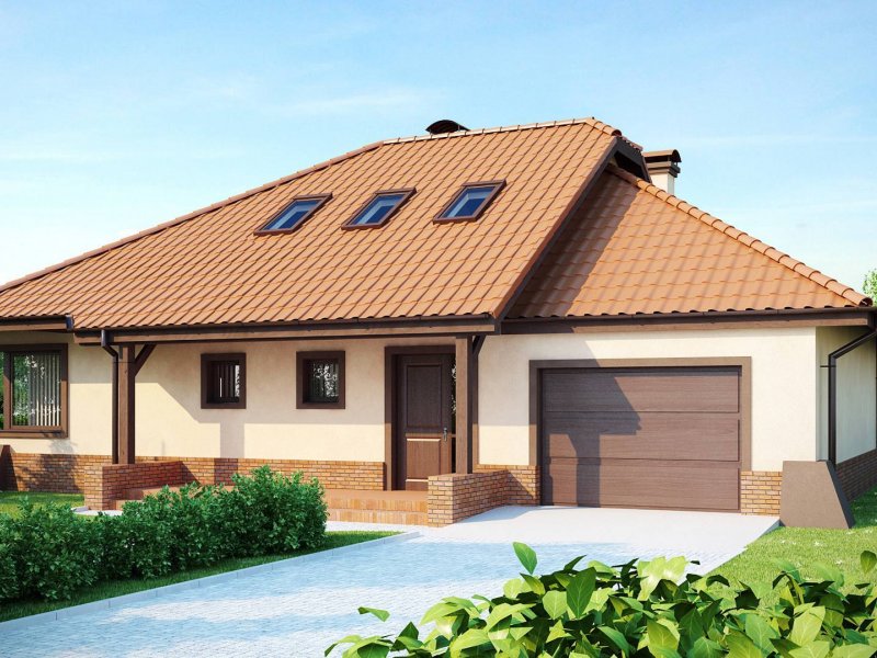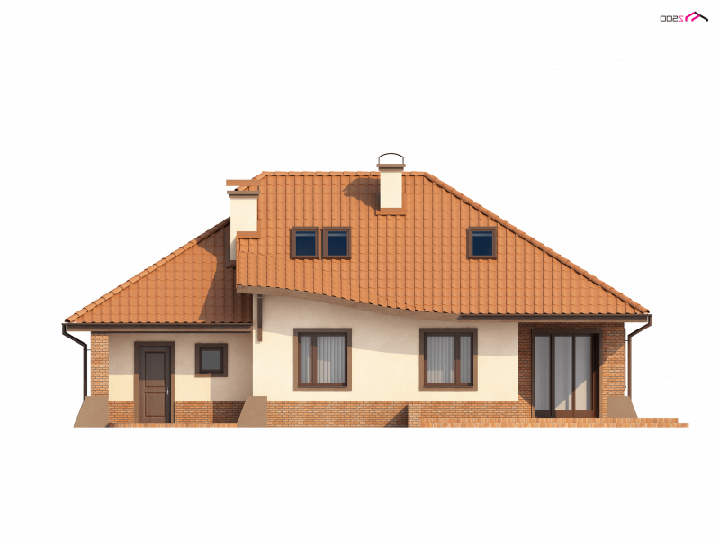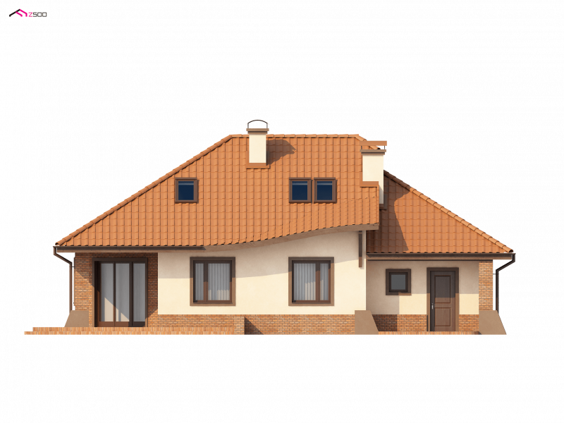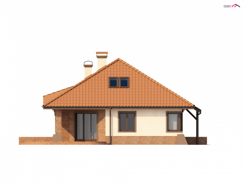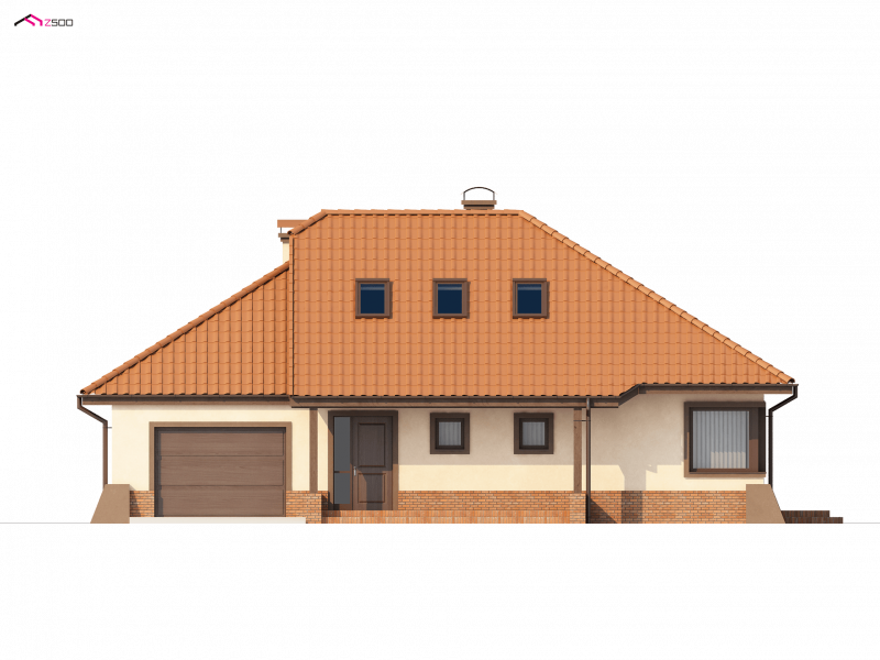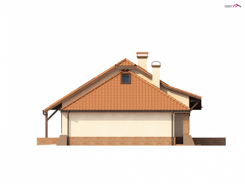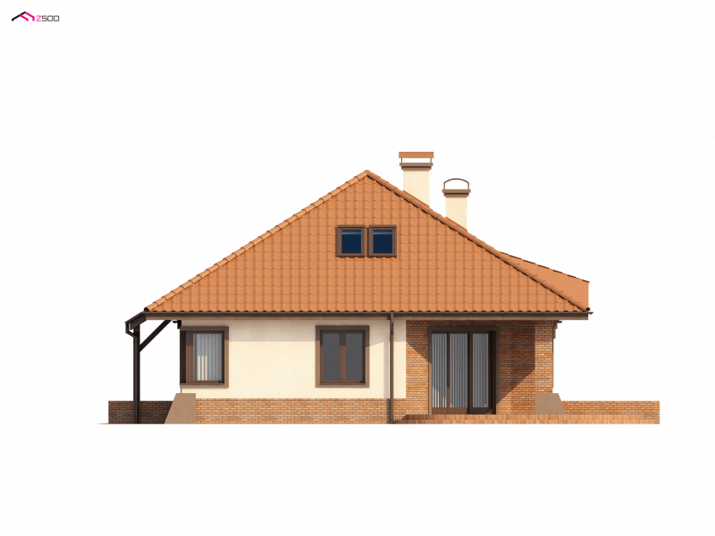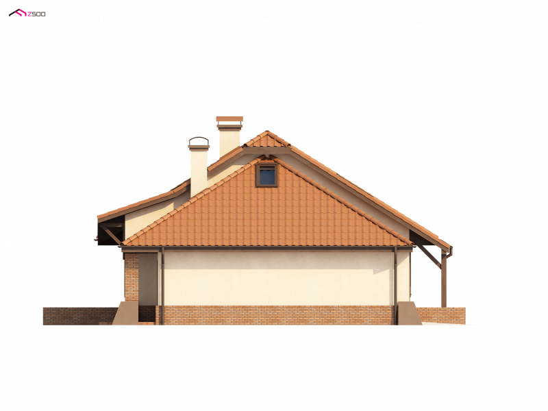 Projekt Z56 to propozycja domu z kopertowym dachem i garażem. Budynek zaprojektowano na rzucie zbliżonym do prostokąta. Słupy podpierające podcień, oraz przypory czynią dom efektownym i indywidualnym.