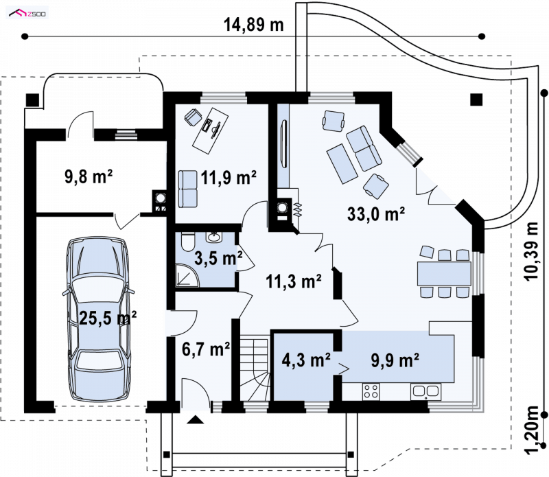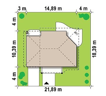 - Min. wymiary działki 18.39x22.89 m