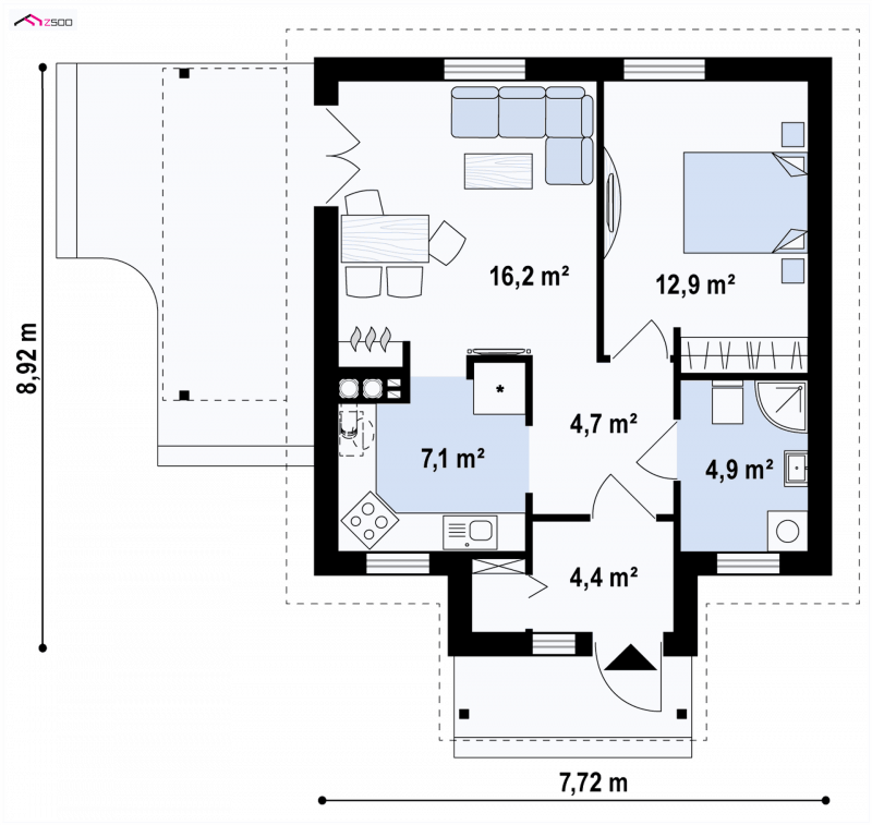 Z73 to doskonała propozycja dla osób szukających małego domku. Dzięki prostej budowie i niewielkim wymiarom, dom jest tani w budowie i utrzymaniu. Świetnie sprawdzi się również jako dom letniskowy.