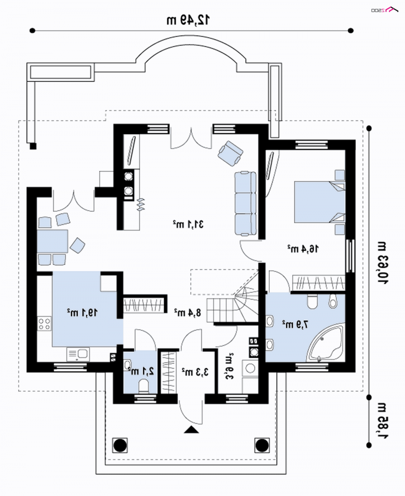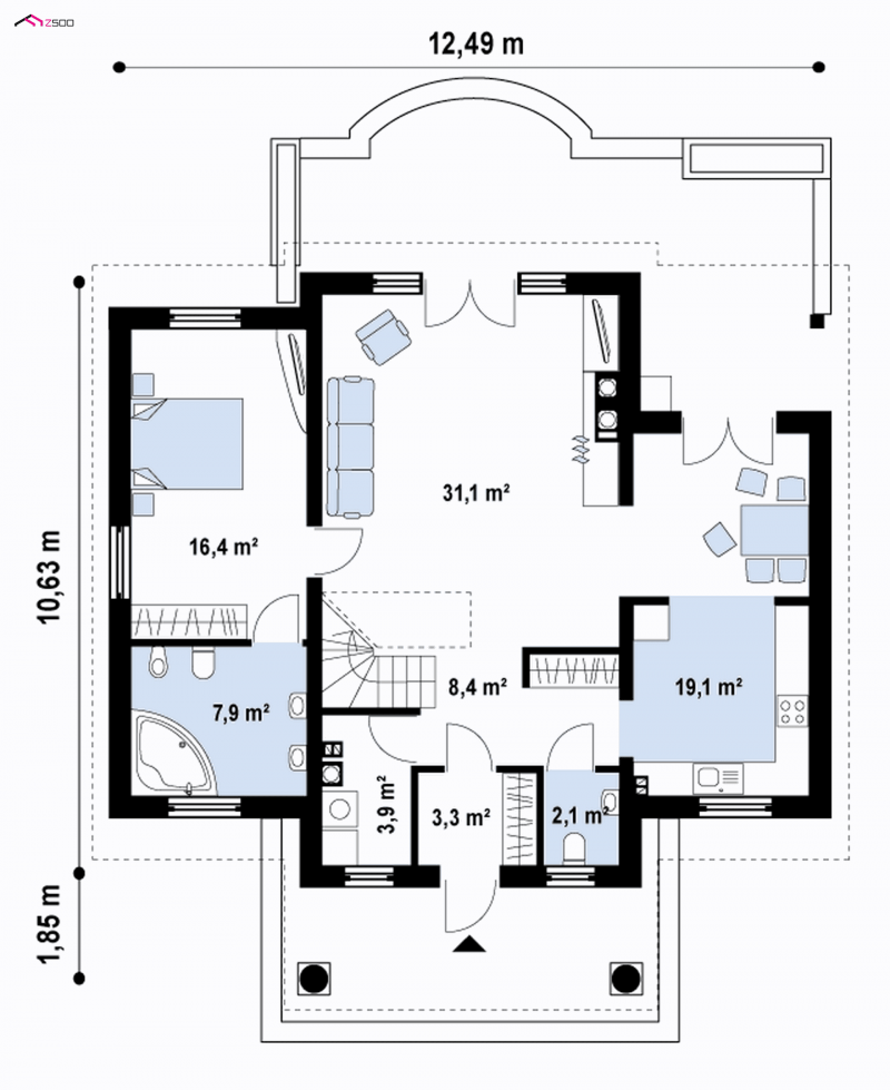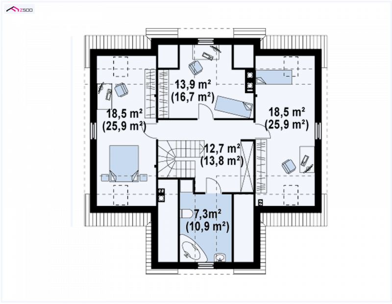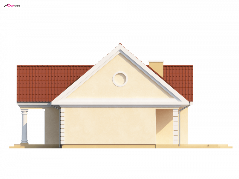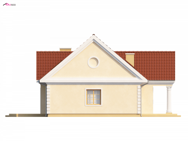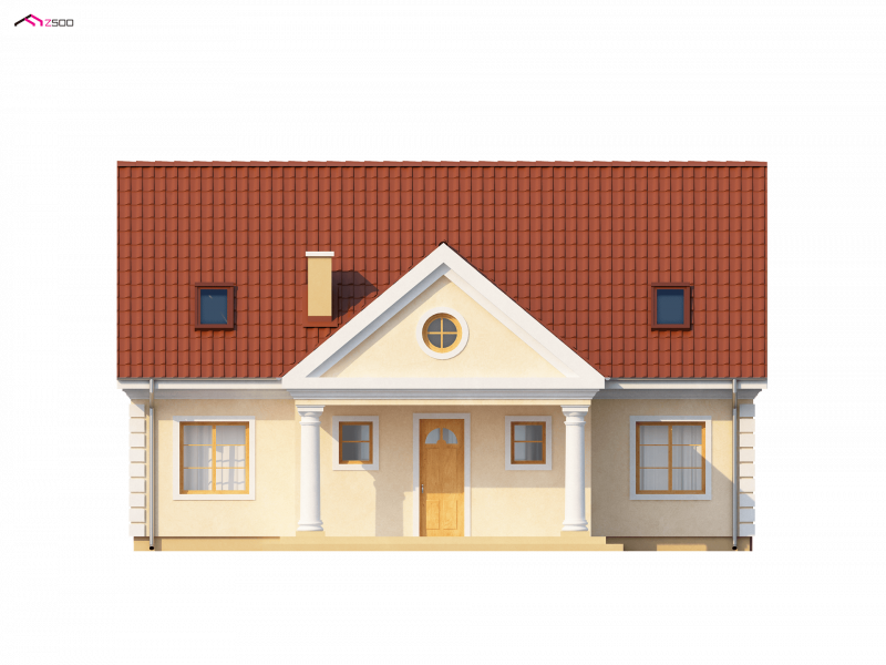 Z9 zmieści się także na małej działce. Dom zaprojektowano w sposób nawiązujący do stylu dworkowego, który charakteryzuje centralne wejście w tympanonie wspartym na kolumnach, stonowana kolorystyka, dekoracyjne detale, gzymsy. Symetryczna, zwarta bryła przekryta jest dachem dwuspadowym, co upraszcza realizację.