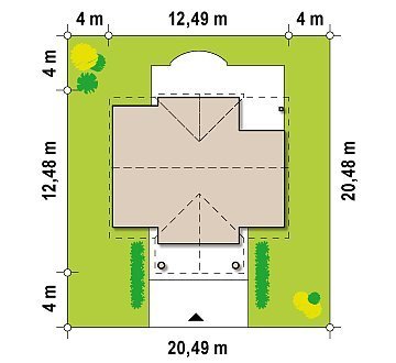 - Min. wymiary działki 18.63x20.49 m