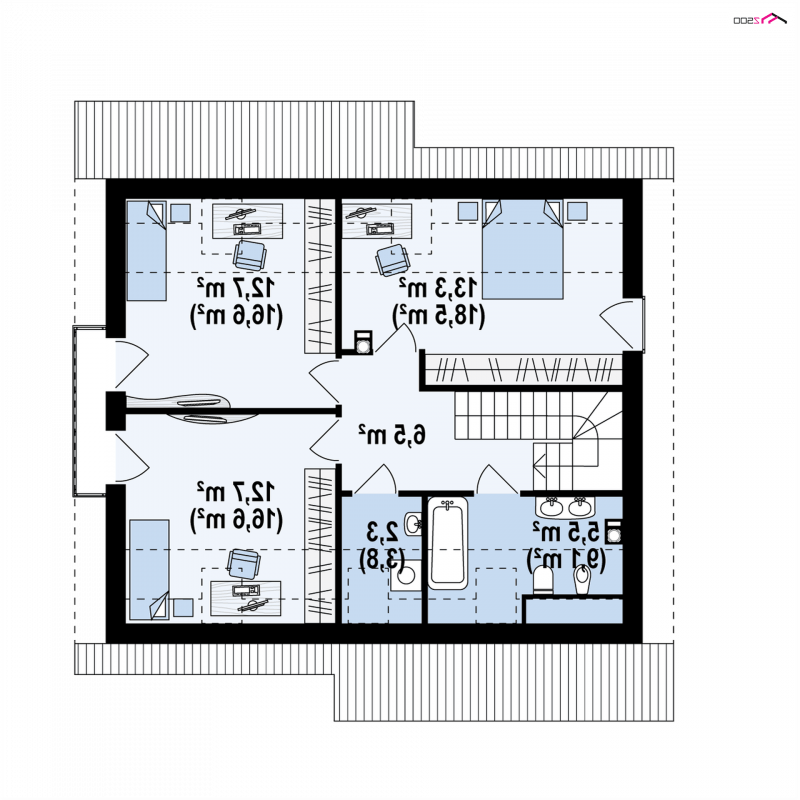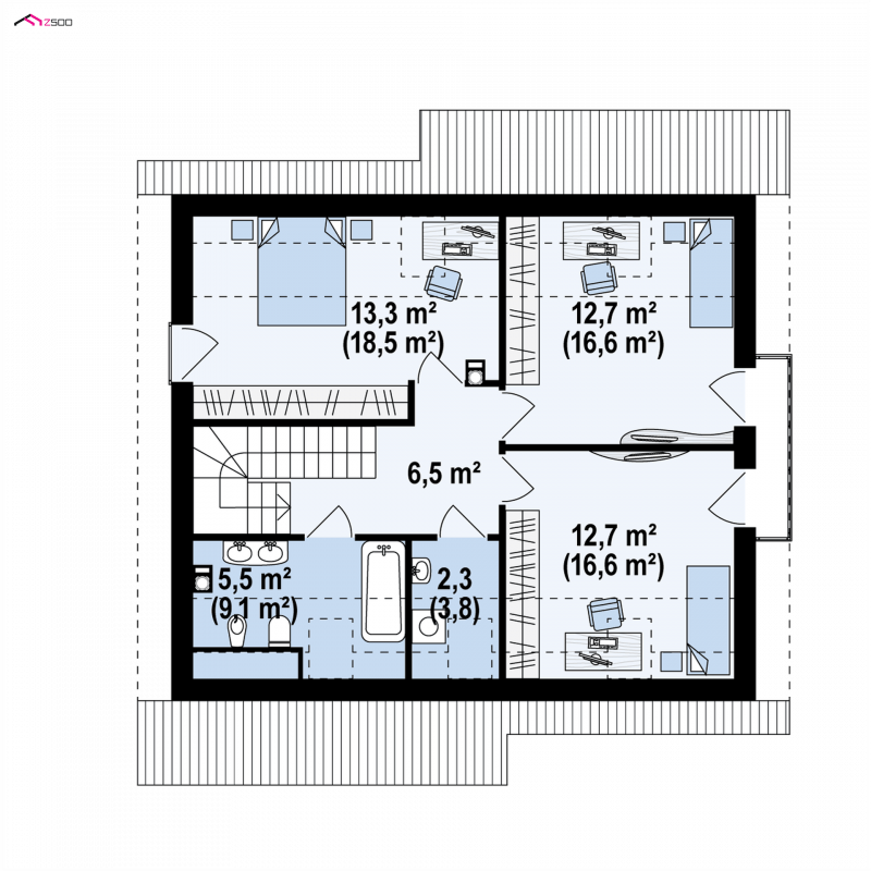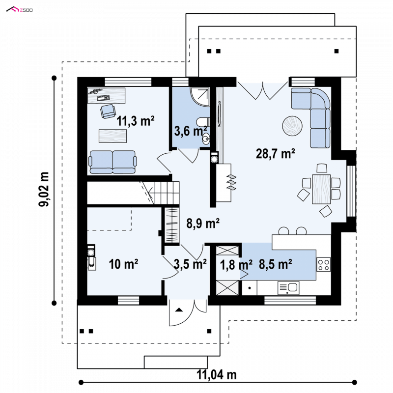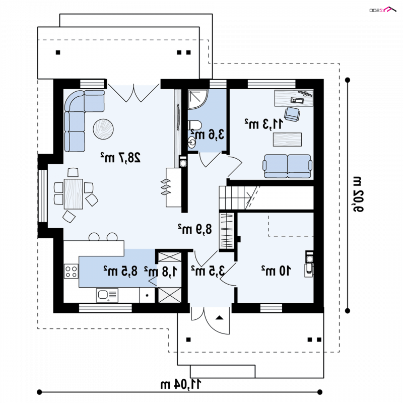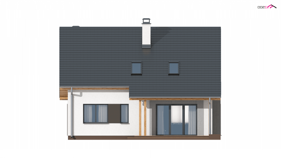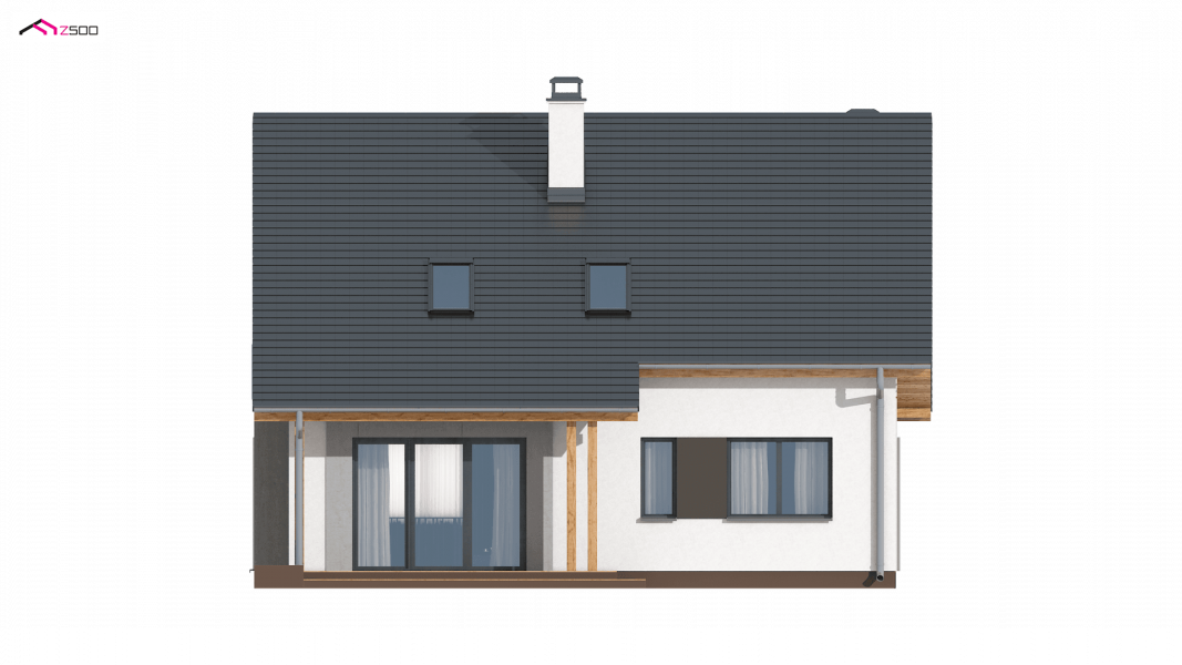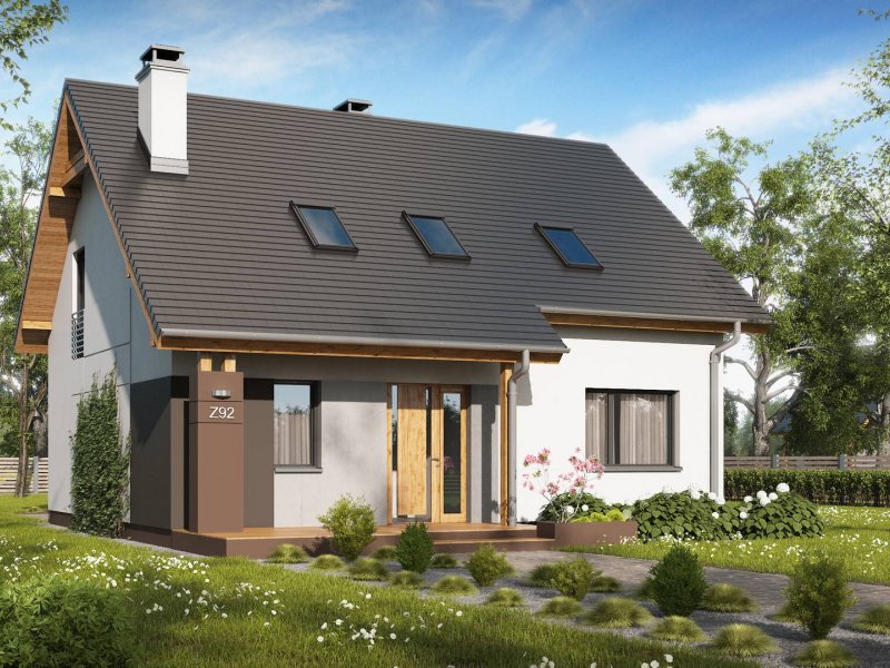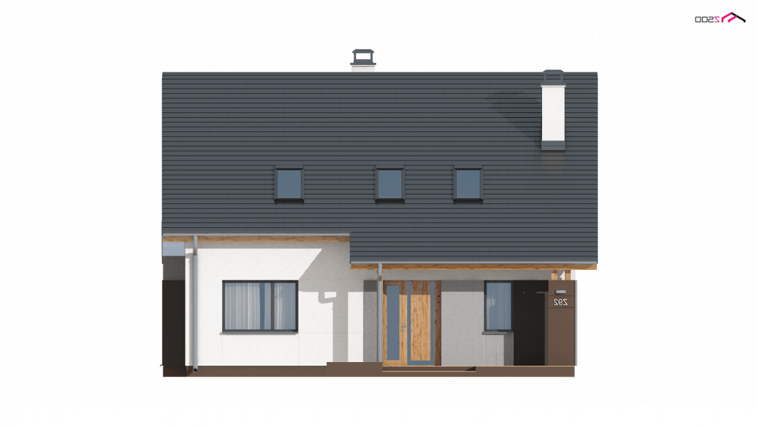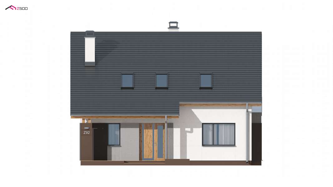 Z92 to zgrabny i funkcjonalny dom z poddaszem użytkowym. Prosta konstrukcja i zwarta bryła przekryta dachem dwuspadowym czyni go inwestycją tanią w budowie oraz późniejszej eksploatacji. Zaletą projektu jest duża kotłownia na paliwo stałe. Projekt można zmieścić także na węższej o 60cm działce likwidując wykusz.