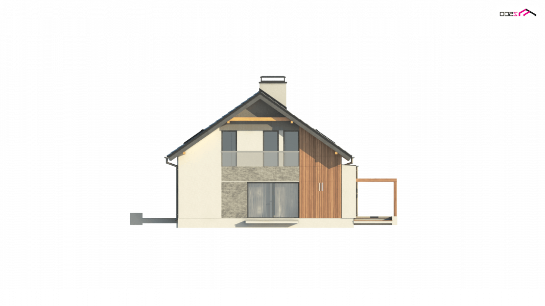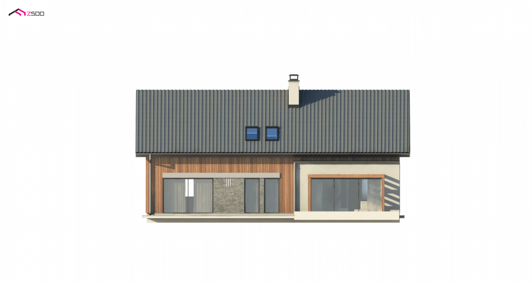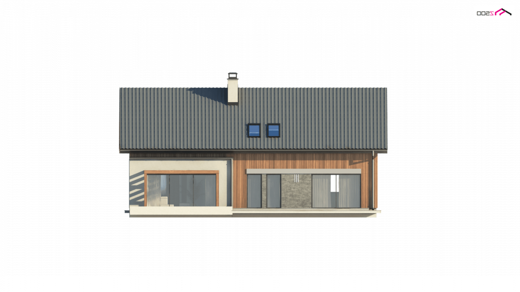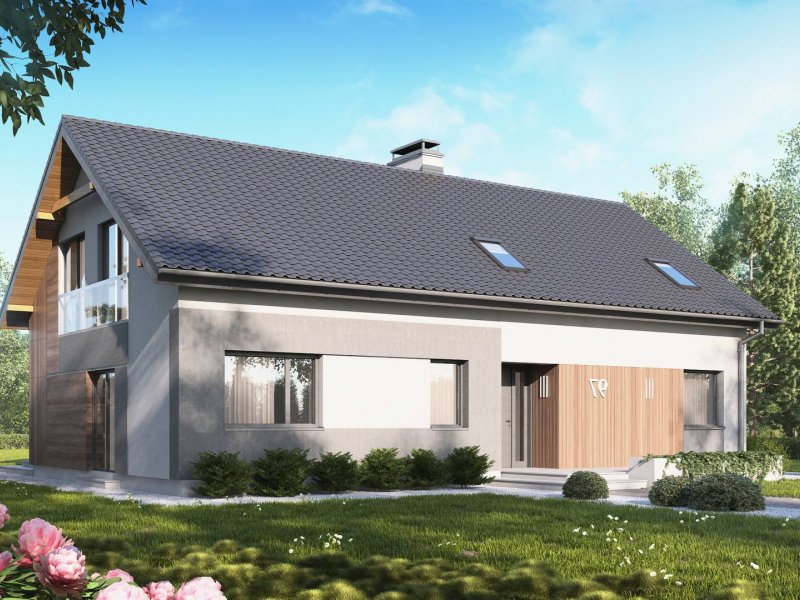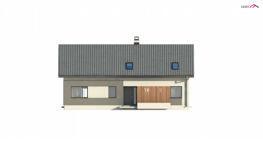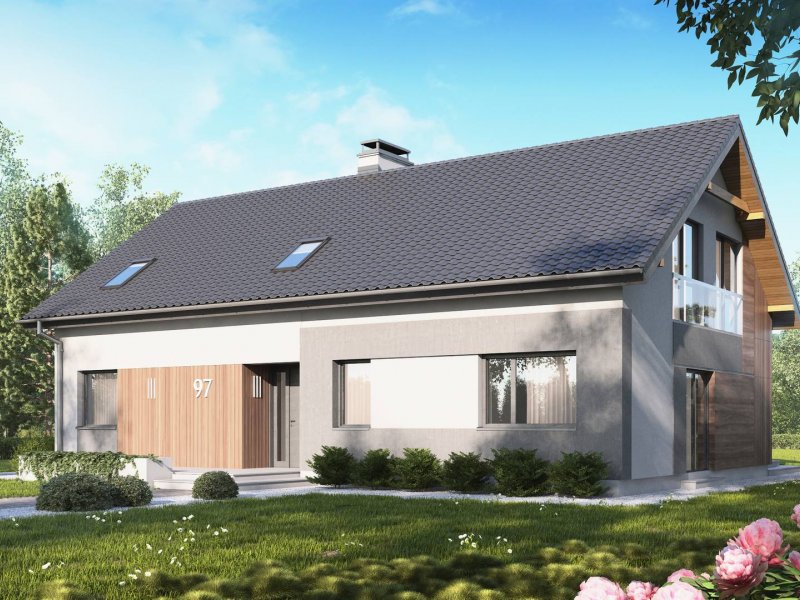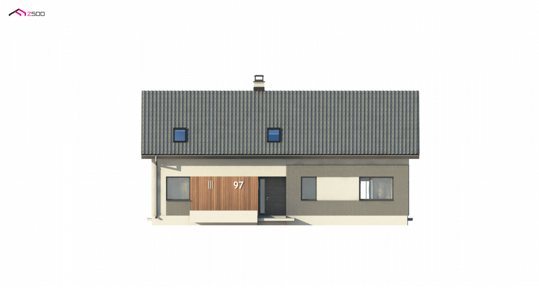 Z97 to dom o prostej, zwartej bryle przekryty dachem dwuspadowym. Brak zbędnych dodatków urozmaicających elewacje, jeden komin i kotłownia w centralnej części czynią ten projekt ekonomiczną i łatwą w realizacji inwestycją.