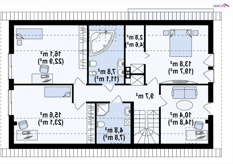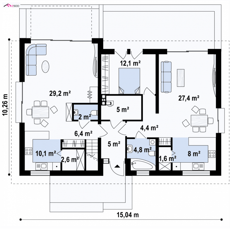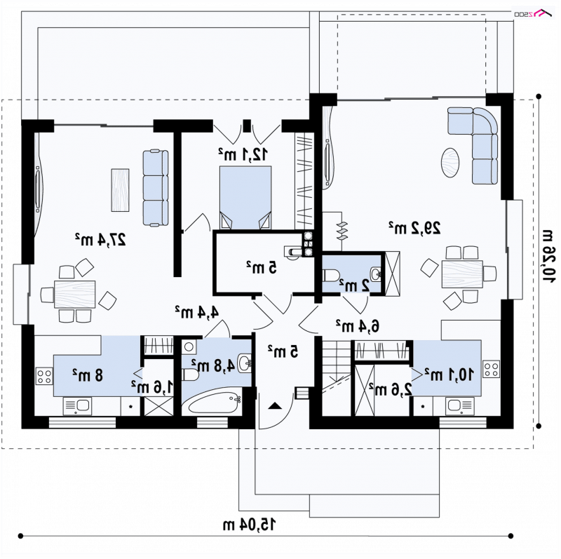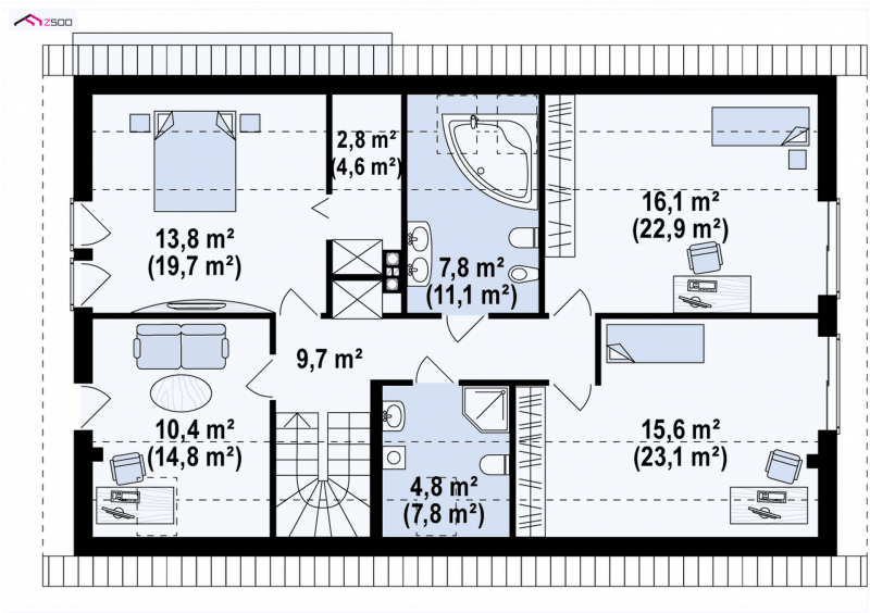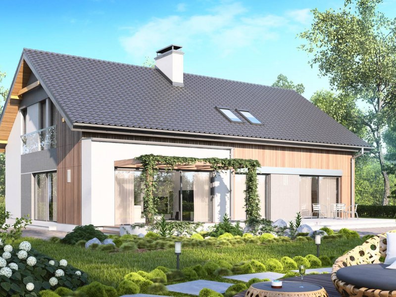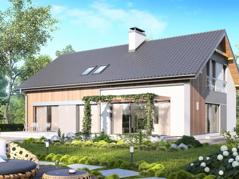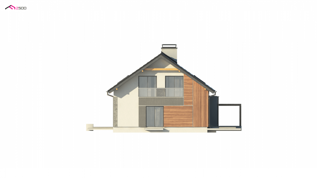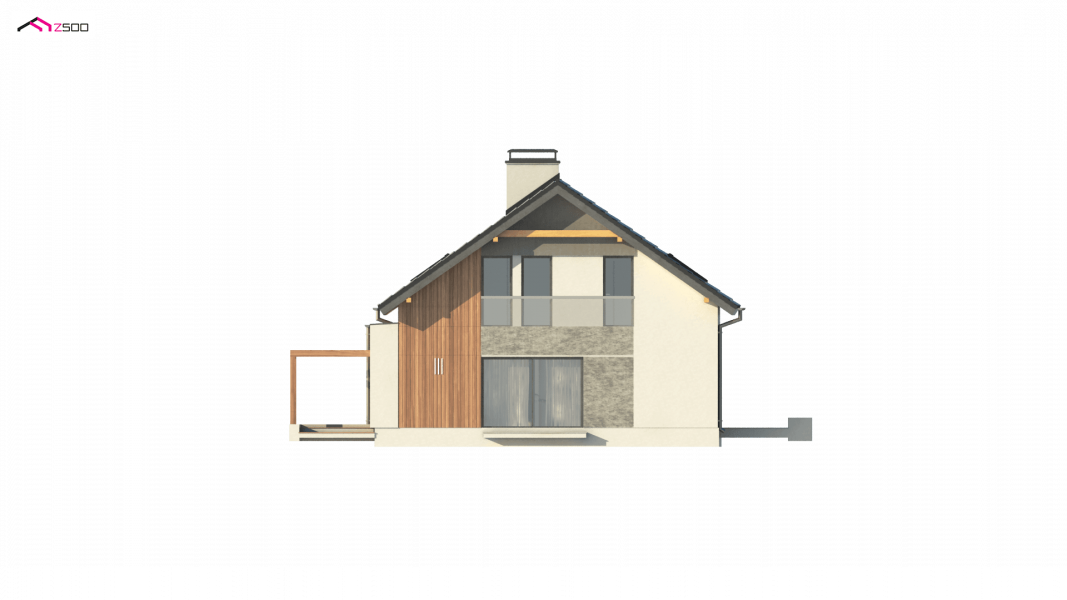 Z97 to dom o prostej, zwartej bryle przekryty dachem dwuspadowym. Brak zbędnych dodatków urozmaicających elewacje, jeden komin i kotłownia w centralnej części czynią ten projekt ekonomiczną i łatwą w realizacji inwestycją.