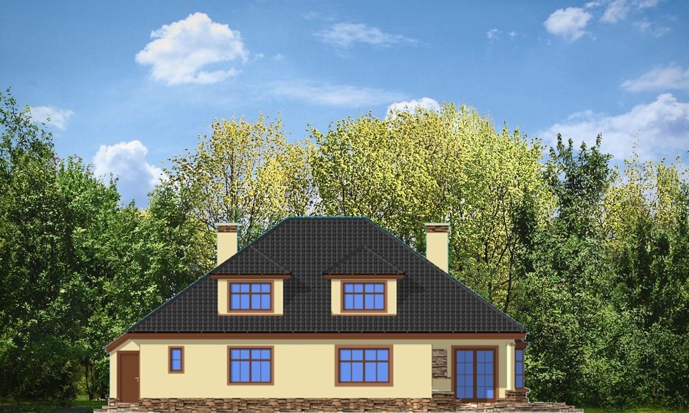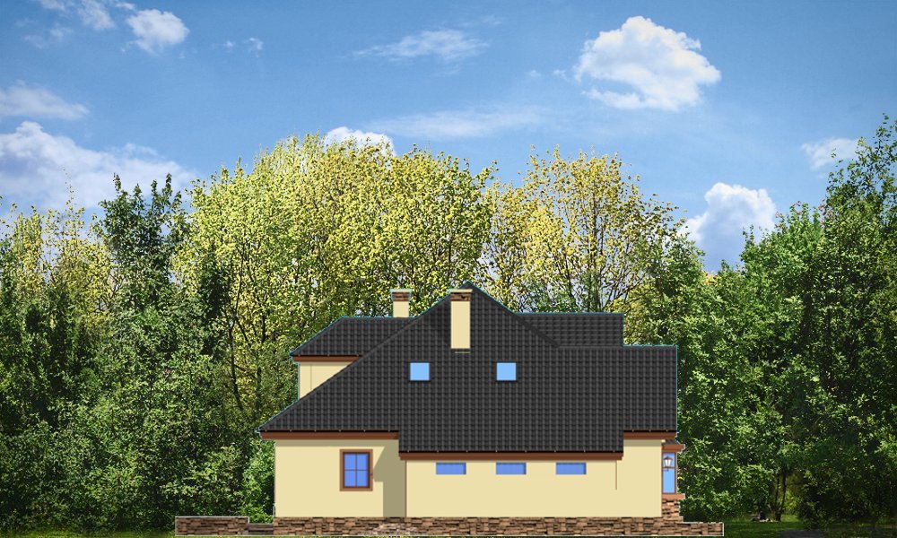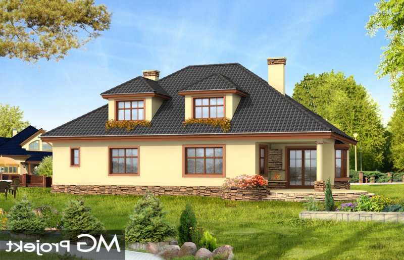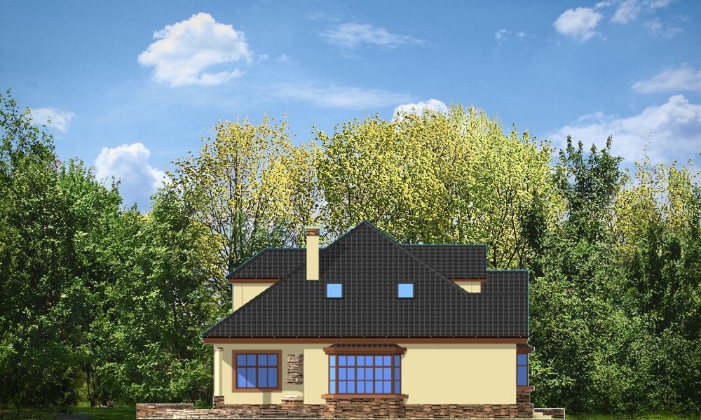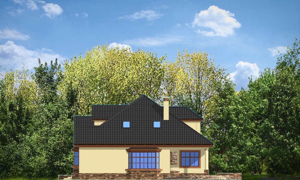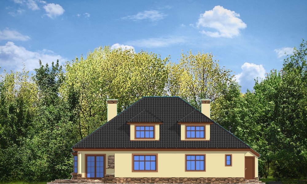 Zacisze 2 to budynek jednorodzinny dla rodziny pięcioosobowej. Dom o atrakcyjnej, rozłożystej bryle z łagodnym wielospadowym dachem, w który wkomponowano duże lukarny. Obszerny podcień frontowy i zadaszony taras z kominkiem. Od strony ogrodu chronią przed deszczem lub zbyt ostrym słońcem. W kuchni i jadalni zaprojektowano wykusze, kolumny i drewniane belkowania - nadają one architekturze przysadzisty, stateczny charakter. Atutem domu jest duża jadalnia z wyjściem na ogród oraz garaż z dodatkową przestrzenią z boku. Pracownia posiada wersję projektu w odbiciu lustrzanym.
