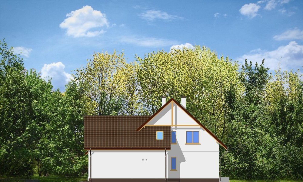 Zalesie to wygodny domek dla 4-5osobowej rodziny. Spokojna stonowana bryła współgra z funkcjonalnym wnętrzem. Domek pasuje na wąską działkę, mimo że posiada dwustanowiskowy garaż. Wnętrze domu: na parterze mieści się duży salon, kuchnia z aneksem oraz gabinet. Na poddaszu zaprojektowano cztery sypialnie, duży pokój kąpielowy i garderobę. Pracownia posiada również projekt w lustrzanym odbiciu.