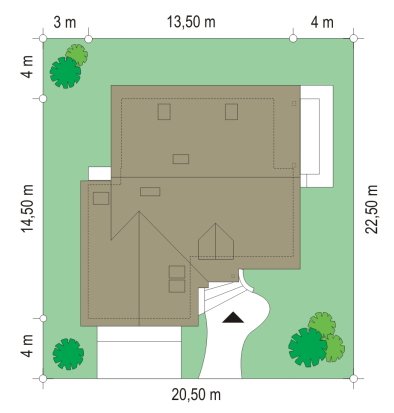 - Min. wymiary działki 20.50x20.50 m