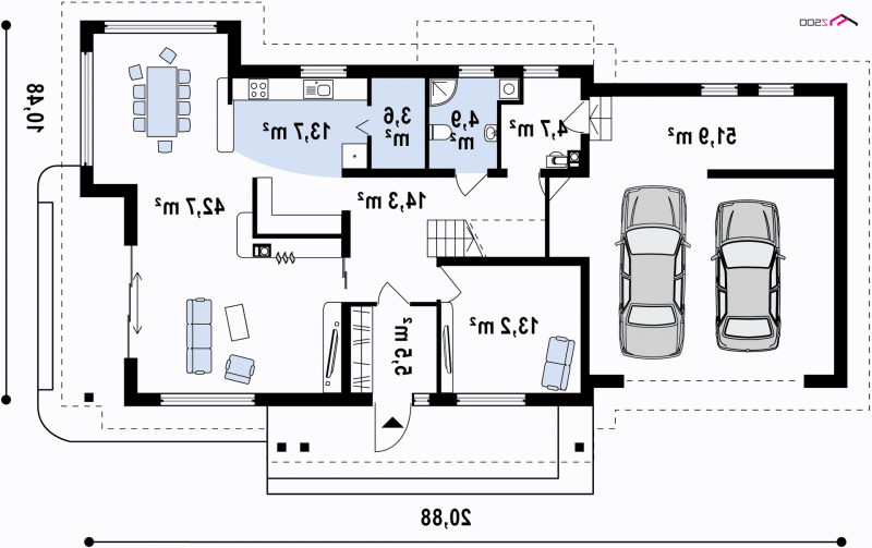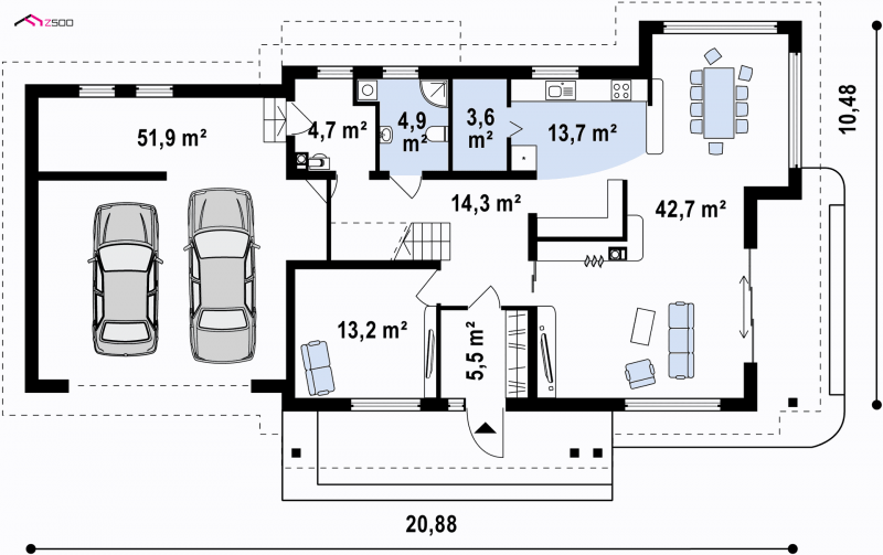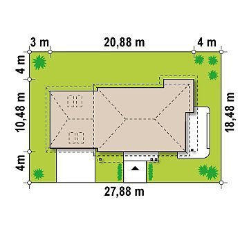 - Min. wymiary działki 18.48x27.88 m