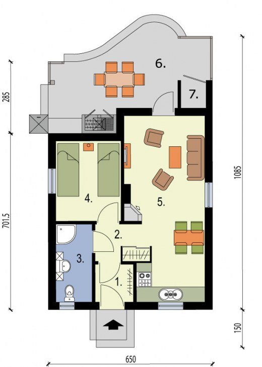 Projekt składa się z części architektonicznej, konstrukcyjnej, wewnętrznych instalacji wod.-kan, . i elektrycznychj. W projekcie załączone są podstawowe zestawienie stali, drewna i stolarki okienno-drzwiowej. Do projektu dołączamy bezpłatną zgodę na wprowadzenie zmian, oświadczenie projektantów o wykonaniu projektu zgodnie z obowiązującymi normami i przepisami oraz kserokopie uprawnień projektantów wraz z aktualnym wpisem do izby. W przypadku zamówienia projektu w technologii lekkiej, drewnianej konstrukcji szkieletowej, powierzchnia użytkowa budynku jest o około 7% większa.