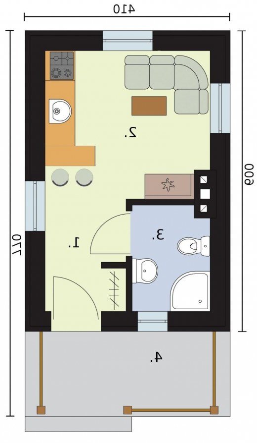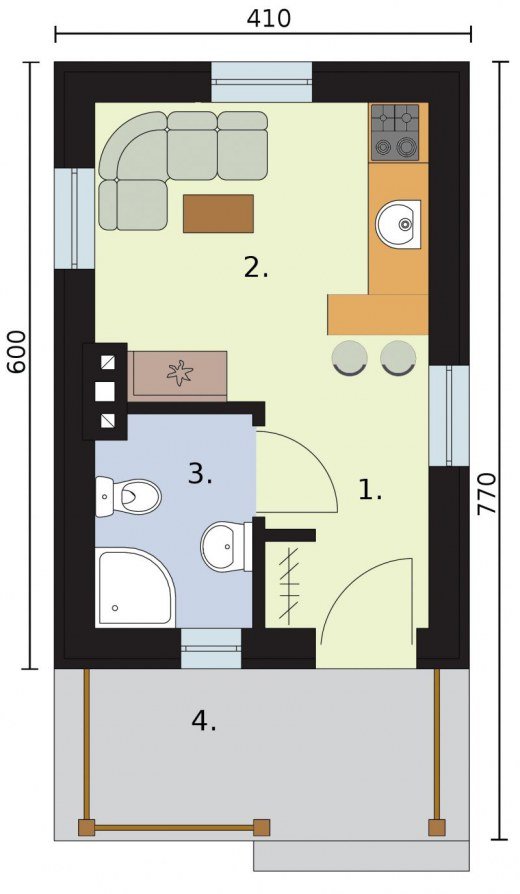 To propozycja dla znających swoje oczekiwania klientów. Skromny, akuratny domek Badajoz, zawiera wszystko, co powinien mieć domek letniskowy. Efektowna weranda zachęca do zatrzymania się na niej na dłużej i jest zapowiedzią wypoczynku po dniu pełnym wrażeń we wnętrzu domu. Znajdziemy w nim wiatrołap, pokój dzienny z kuchnią oraz łazienką. Wszystko to na jedynych 16 m2!