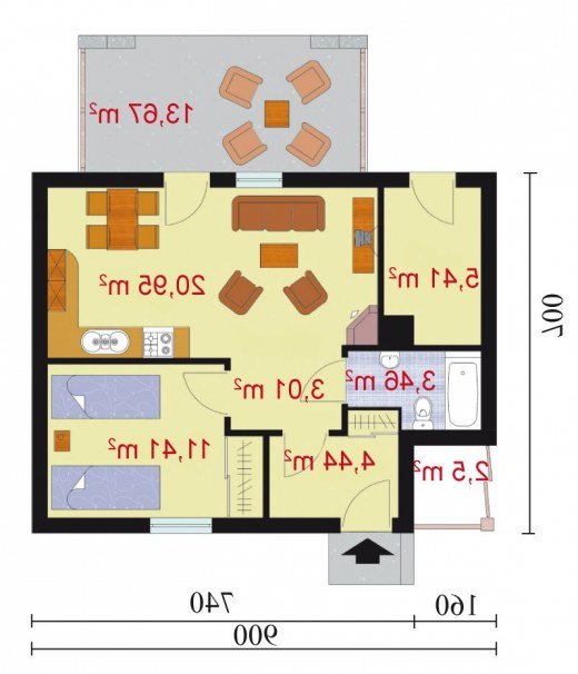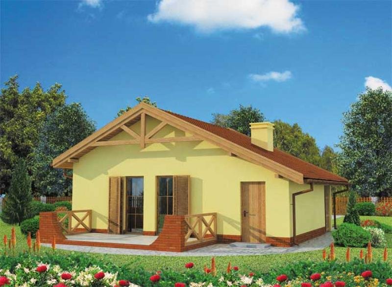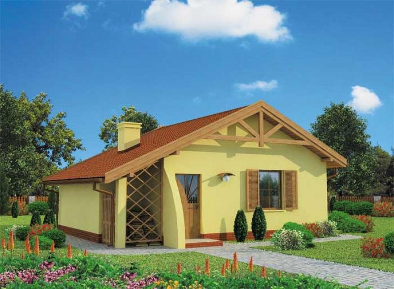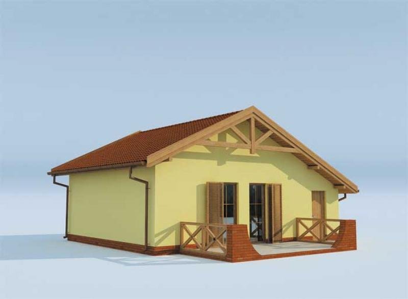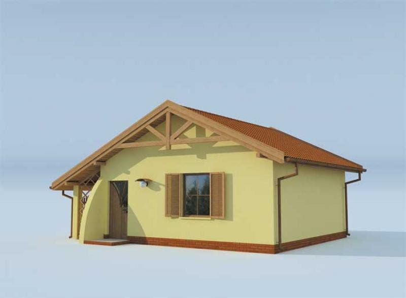 Ze względu na docieplenie budynku do każdego wymiaru widocznego na rzucie należy dodać 20cm. "Bamako" Domek Bamako stanowi dość ciekawą propozycję architektoniczną dla osób potrzebujących szczególnych rozwiązań. W projekcie frontu domu przewidziano bowiem m.in. specjalne zadaszenie, które możemy wykorzystać zgodnie z naszymi potrzebami, np. na drewno, by uchronić je przed wilgocią. Oprócz tego, zadaszonego i oddzielonego półokrągłym murkiem od wejścia, składu, front domu został wyposażony w lampę, która okaże się zapewne funkcjonalnym dodatkiem, po zapadnięciu zmroku. Wewnątrz mamy miejsce na urządzenie przestronnej, oddzielonej od reszty domku, sypialni oraz łazienki. Dosyć obszerny pokój dzienny został połączony z aneksem kuchennym i jadalnią. Stąd możemy także wyjść na taras. Nikogo nie trzeba chyba przekonywać, jak ważnym miejscem w domku letniskowym jest taras – tam bowiem spędzimy najwięcej czasu w letnie dni i wieczory. Bamako jest jednak przede wszystkim projektem dla osób lubiących aktywnie spędzać swój czas podczas letniego wypoczynku. Przewidziano w nim również pomieszczenie gospodarcze, gdzie możemy przechowywać różnorodny sprzęt sportowy, czy też potrzebne nam na działce narzędzia ogrodowe. Jeżeli zdecydujemy się na projekt w wersji całorocznej, możemy w tym miejscu zostawić np. sprzęt narciarski, który w części użytkowej domku, mógłby nam po prostu przeszkadzać. Ten niepozorny na pierwszy rzut oka projekt, jest dość ciekawą propozycją. Spełni on zapewne oczekiwania osób lubiących w swoim otoczeniu ład, potrzebujących pomieszczeń ze szczególnym przeznaczeniem. Być może warto wybrać właśnie tę propozycję? Projekt składa się z części architektonicznej, konstrukcyjnej, wewnętrznych instalacji wod.-kan, c. o. i elektrycznej. W projekcie załączone są podstawowe zestawienie stali, drewna i stolarki okienno-drzwiowej. Do projektu dołączamy bezpłatną zgodę na wprowadzenie zmian, oświadczenie projektantów o wykonaniu projektu zgodnie z obowiązującymi normami i przepisami oraz kserokopie uprawnień projektantów wraz z aktualnym wpisem do izby. W przypadku zamówienia projektu w technologii lekkiej, drewnianej konstrukcji szkieletowej, powierzchnia użytkowa budynku jest o około 7% większa.