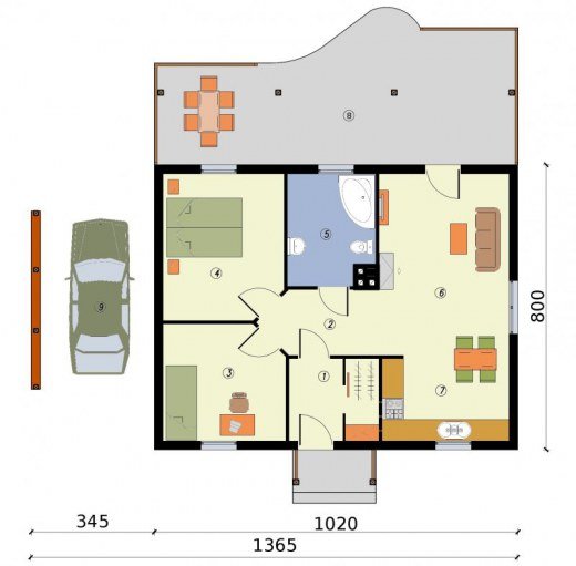Ten projekt to poprawiony, racjonalnie zagospodarowany brat domku letniskowego Barbados. Korzystniejsze rozmieszczenie pomieszczeń, rozległa przystająca do elewacji zewnętrznej wiata, sprawiają, że mamy do czynienia z zupełnie nową jakością. Ten dom letniskowy jest wymarzonym miejscem na wyczekany urlop, czy wakacje. Barbados 2 to przemyślanie zaprojektowane dzieło architektoniczne, które łączy praktyczne zalety z elegancją i prostotą. Wnętrze wyróżnia uporządkowany układ pokoi, na który składają się powiększone w stosunku do Barbados 1 pomieszczenia, takie jak salon, pokój gościnny z kuchnią, dwa pokoje oraz łazienka. Na zewnątrz świetnym i niezwykle użytecznym pomysłem jest zadaszony taras, z pewnością będzie on miejscem niejednej udanej biesiady, spotkania, każdego miłego wieczoru.
