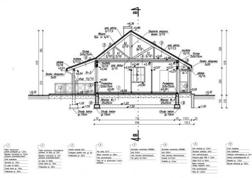 Technologia szkieletu drewnianego : - ściany zewnętrzne : słupki 5x15 rozstawione max. co 40cm obite zewnątrz płytą OSB 3 1,8cm , a wewnątrz płytą GK 1,25cm , przestrzeń pomiędzy słupkami wypełniona wełną mineralną 15cm - ściana wewnętrzna działowa : słupki 5x9 rozstawione max. co 40cm obite z dwóch stron płytą GK 1,25cm przestrzeń pomiędzy słupkami wypełniona wełną mineralną 9cm - sufit podwieszany z płyt GK na ruszcie stalowym - konstrukcja więźby dachowej : kratownica drewniana - pokrycie dachówka ceramiczna - istnieje możliwość adaptacji obiektu na budynek całoroczny - docieplenie styropianem ryflowanym o gr. 5cm - w przypadku wersji całorocznej docieplenie warstwą styropianu gr. 10 cm. - instalacja grzewcza w wersji całorocznej : kocioł gazowy w łazience.