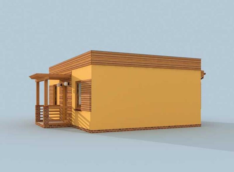 Ze względu na docieplenie budynku do każdego wymiaru widocznego na rzucie należy dodać 20cm. Ten projekt to brat wyposażonego w dwuspadowy dach Bayamo. W nowym wcieleniu, z jednospadowym dachem domek zyskał nowego charakteru. Szczególnie korzystnie będzie się prezentował w sąsiedztwie dzikiej przyrody, lasu, czy otwartych przestrzeni. Bayamo 2 ma w sobie coś z klimatu Dzikiego Zachodu, urokliwe i symetryczne odeskowanie drzwi, okien oraz ścian wypuszczonych poza linię dachu znakomicie o tym zaświadczają. Całości zewnętrznego wyglądu domu dopełniają stylowe zadaszenia, wykonane z drewna weranda i taras oraz okalający dom klinkierowy cokolik. Wnętrze zaskoczy nas funkcjonalnością rozwiązań. Po pierwsze mamy tutaj, oddzielone od reszty pomieszczeń, dwie sypialnie. Projekt domu letniskowego jest zatem komfortowym rozwiązaniem np. dla czteroosobowej rodziny. Obok sypialni, przewidziano także miejsce na łazienkę z natryskiem. Sercem całego projektu jest jednak pomieszczenie o największej powierzchni, pokój dzienny, w którym znajdziemy min. kominek. Możemy tutaj wydzielić część potrzebną do przygotowywania i spożywania posiłków oraz większą część pełniącą funkcję pokoju dziennego. Bezpośrednio z pokoju dziennego, zaopatrzonego w aneks kuchenny, można przejść na taras. Jeżeli wzniesiemy domek zgodnie z kierunkami świata, przewidzianymi w projekcie, będziemy mogli podziwiać stąd piękne zachody słońca. Taki układ pomieszczeń w domku letniskowym będzie także sprzyjał urządzaniu przyjęć na tarasie czy w ogrodzie, ponieważ część kuchenna została zaprojektowana tak, by była w pobliżu bocznego wyjścia z domu. Bayamo 2 zasługuje na szczególną uwagę, pomieszczenia zostały w nim rozmieszone tak, by optymalnie wykorzystać przestrzeń, co jest niezwykle istotne w niewielkich domkach letniskowych. Projekt składa się z części architektonicznej, konstrukcyjnej, wewnętrznych instalacji wod.-kan, c. o. i elektrycznej. W projekcie załączone są podstawowe zestawienie stali, drewna i stolarki okienno-drzwiowej. Do projektu dołączamy bezpłatną zgodę na wprowadzenie zmian, oświadczenie projektantów o wykonaniu projektu zgodnie z obowiązującymi normami i przepisami oraz kserokopie uprawnień projektantów wraz z aktualnym wpisem do izby. W przypadku zamówienia projektu w technologii lekkiej, drewnianej konstrukcji szkieletowej, powierzchnia użytkowa budynku jest o około 7% większa.