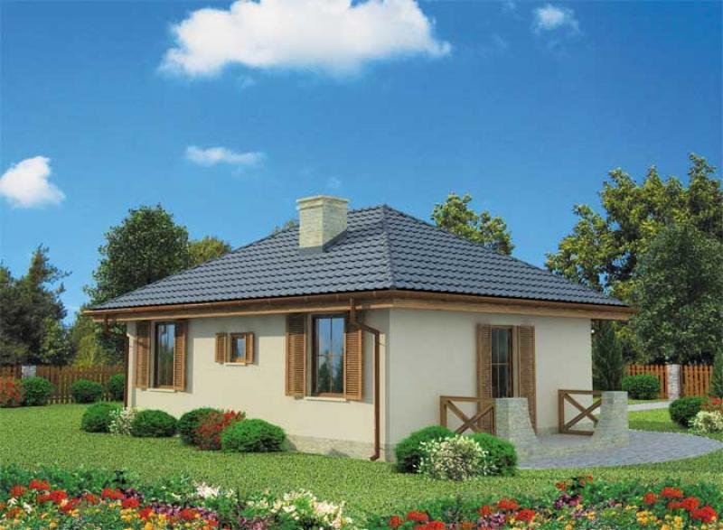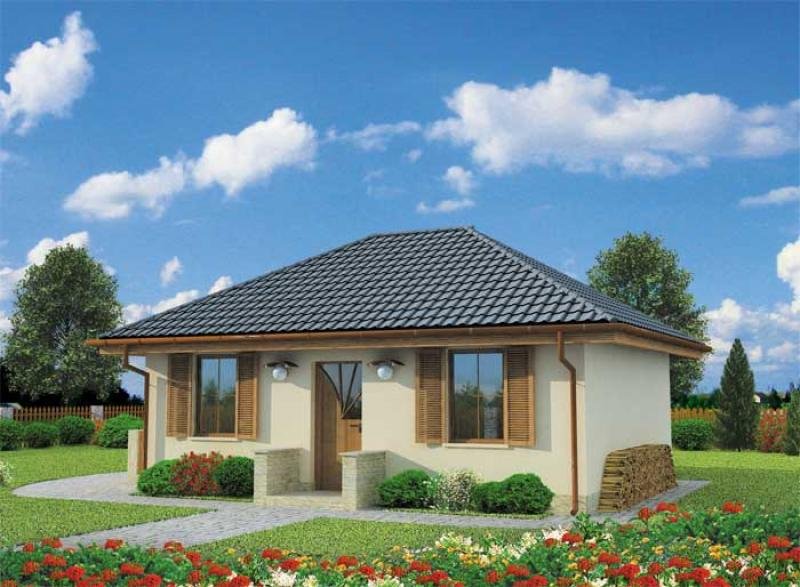 "Bayamo" Jeżeli potrzebujesz prostego i funkcjonalnego domku letniskowego (dostępnego również w wersji całorocznej), to projekt Bayamo jest właśnie dla Ciebie. Wejście do domku, umieszczone w samym środku elewacji frontowej, sąsiaduje z dwoma oknami. Nad drzwiami, które z prawej i lewej strony zostały otoczone symetrycznymi murkami, zamontować można dwie lampki oświetlające przestrzeń wokół wejścia, po zapadnięciu zmroku. Gdy wejdziemy do środka, domek zaskoczy nas funkcjonalnością rozwiązań. Po pierwsze mamy tutaj, przede wszystkim oddzielone od reszty pomieszczeń, dwie, przestronne sypialnie. Projekt jest zatem komfortowym rozwiązaniem dla czteroosobowej rodziny lub dwóch małżeństw. Obok sypialni, przewidziano także miejsce na łazienkę z natryskiem. Sercem całego projektu jest jednak pomieszczenie o największej powierzchni. Możemy tutaj wydzielić część potrzebną do przygotowywania i spożywania posiłków oraz większą część pełniącą funkcję pokoju dziennego. Bezpośrednio z pokoju dziennego, zaopatrzonego w aneks kuchenny, można przejść na taras. Jeżeli wzniesiemy domek zgodnie z kierunkami świata, przewidzianymi w projekcie, będziemy mogli podziwiać stąd piękne zachody słońca. Taki układ pomieszczeń w domku letniskowym będzie także sprzyjał urządzaniu przyjęć na tarasie czy w ogrodzie, ponieważ część kuchenna została zaprojektowana tak, by była w pobliżu bocznego wyjścia z domu. Bayamo zasługuje na uwagę, ponieważ pomieszczenia zostały w nim rozmieszone tak, by optymalnie wykorzystać przestrzeń, co jest niezwykle istotne w niewielkich domkach letniskowych. Nie przewidziano tutaj pomieszczenia gospodarczego, ale rekompensuje nam to obecność dwóch sypialni. Być może warto wziąć pod uwagę właśnie ten projekt? Projekt składa się z części architektonicznej, konstrukcyjnej, wewnętrznych instalacji wod.-kan, c. o. i elektrycznej. W projekcie załączone są podstawowe zestawienie stali, drewna i stolarki okienno-drzwiowej. Do projektu dołączamy bezpłatną zgodę na wprowadzenie zmian, oświadczenie projektantów o wykonaniu projektu zgodnie z obowiązującymi normami i przepisami oraz kserokopie uprawnień projektantów wraz z aktualnym wpisem do izby. W przypadku zamówienia projektu w technologii lekkiej, drewnianej konstrukcji szkieletowej, powierzchnia użytkowa budynku jest o około 7% większa.
